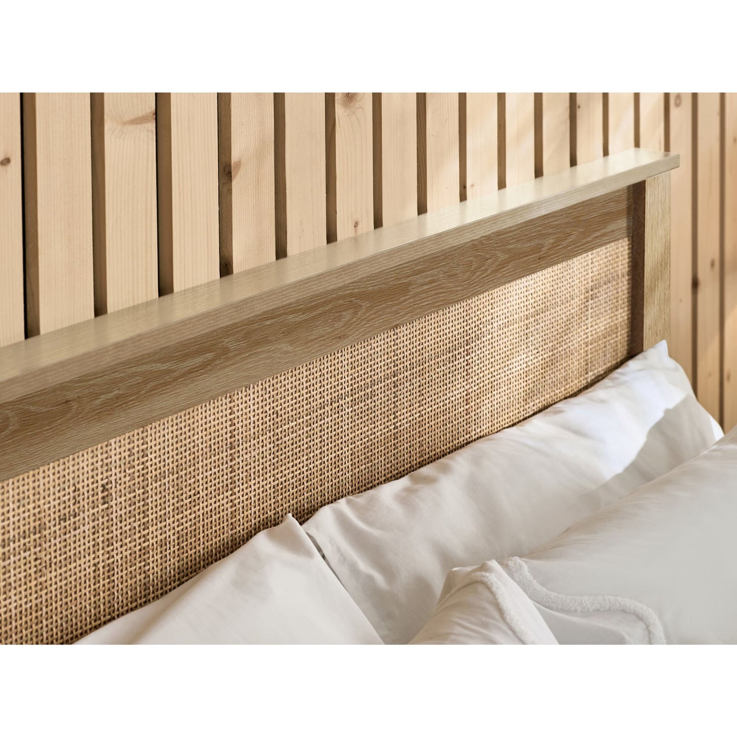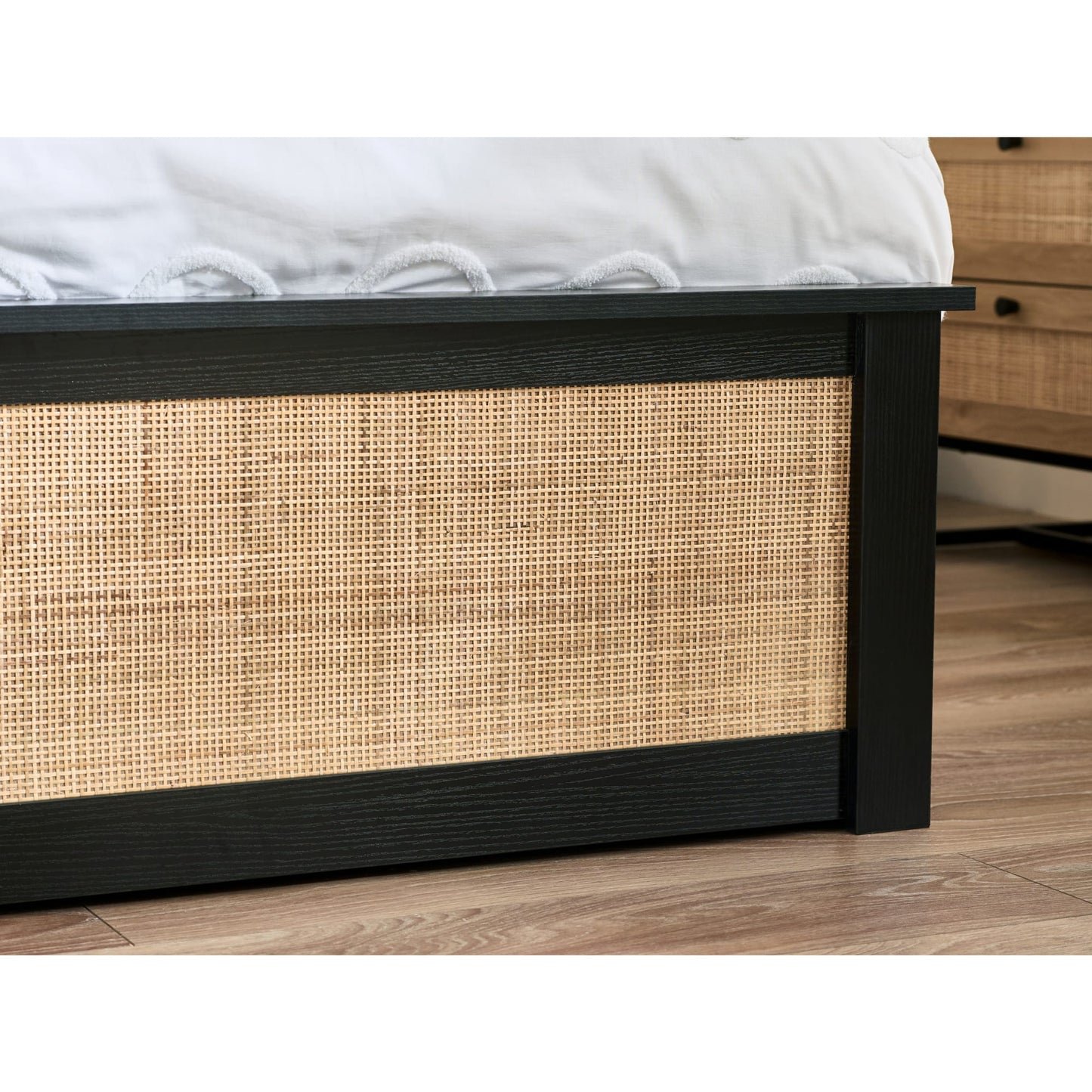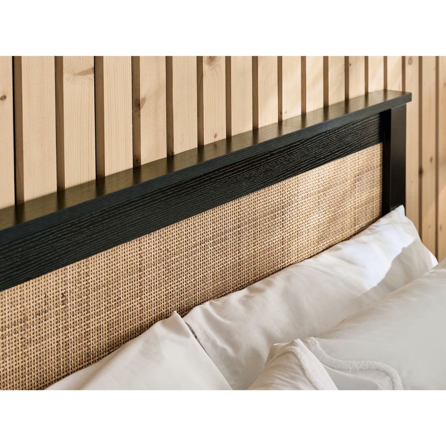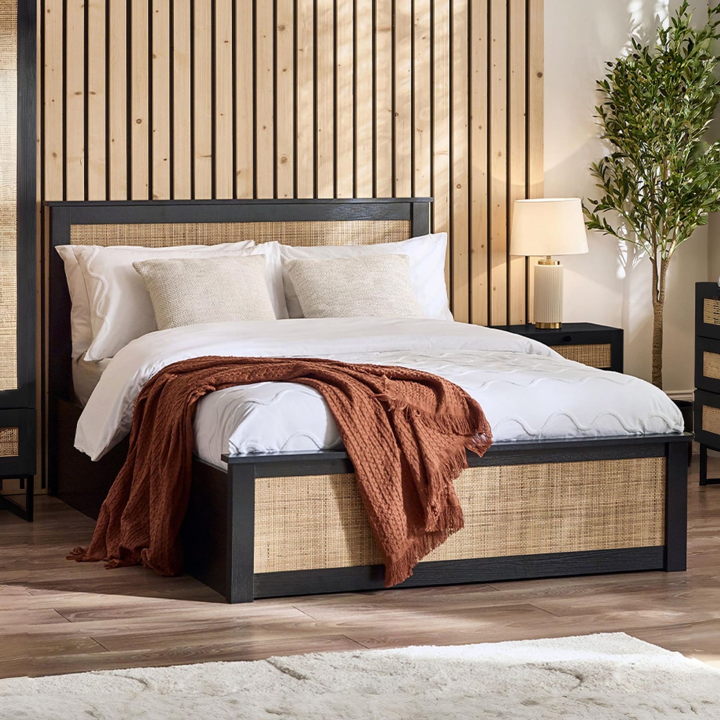 - Stylish rattan headboard and footboard complement the contemporary minimalist aesthetic.