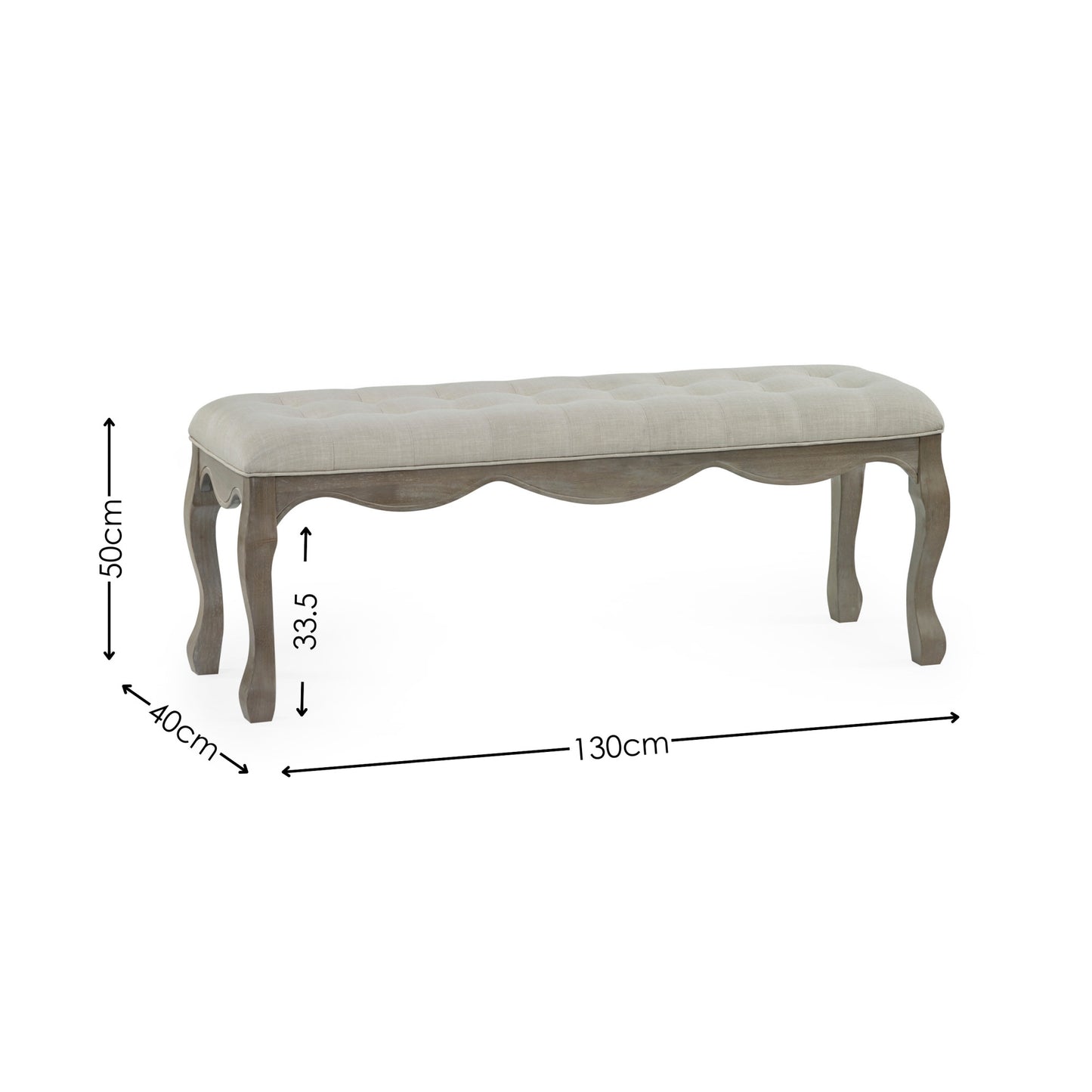 | Name | Camille Oatmeal Linen Upholstered Bench with French Style Legs |