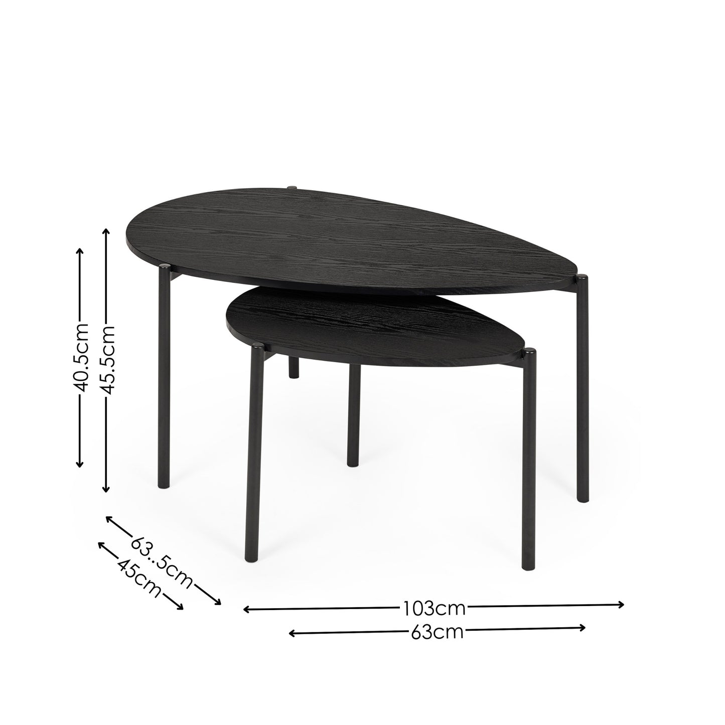 | Name | Lorette Black Ash Effect Teardrop Nest of 2 Coffee Tables |