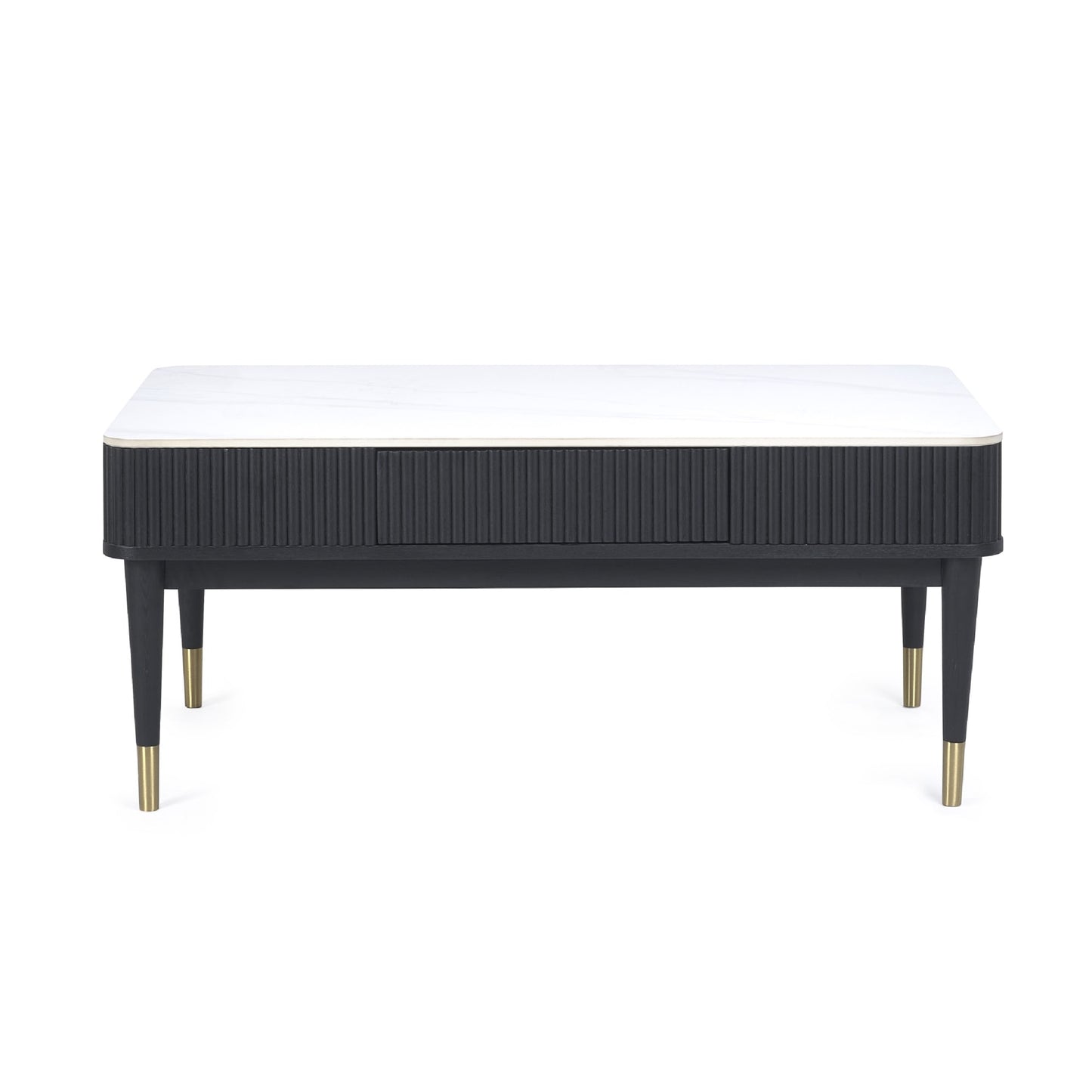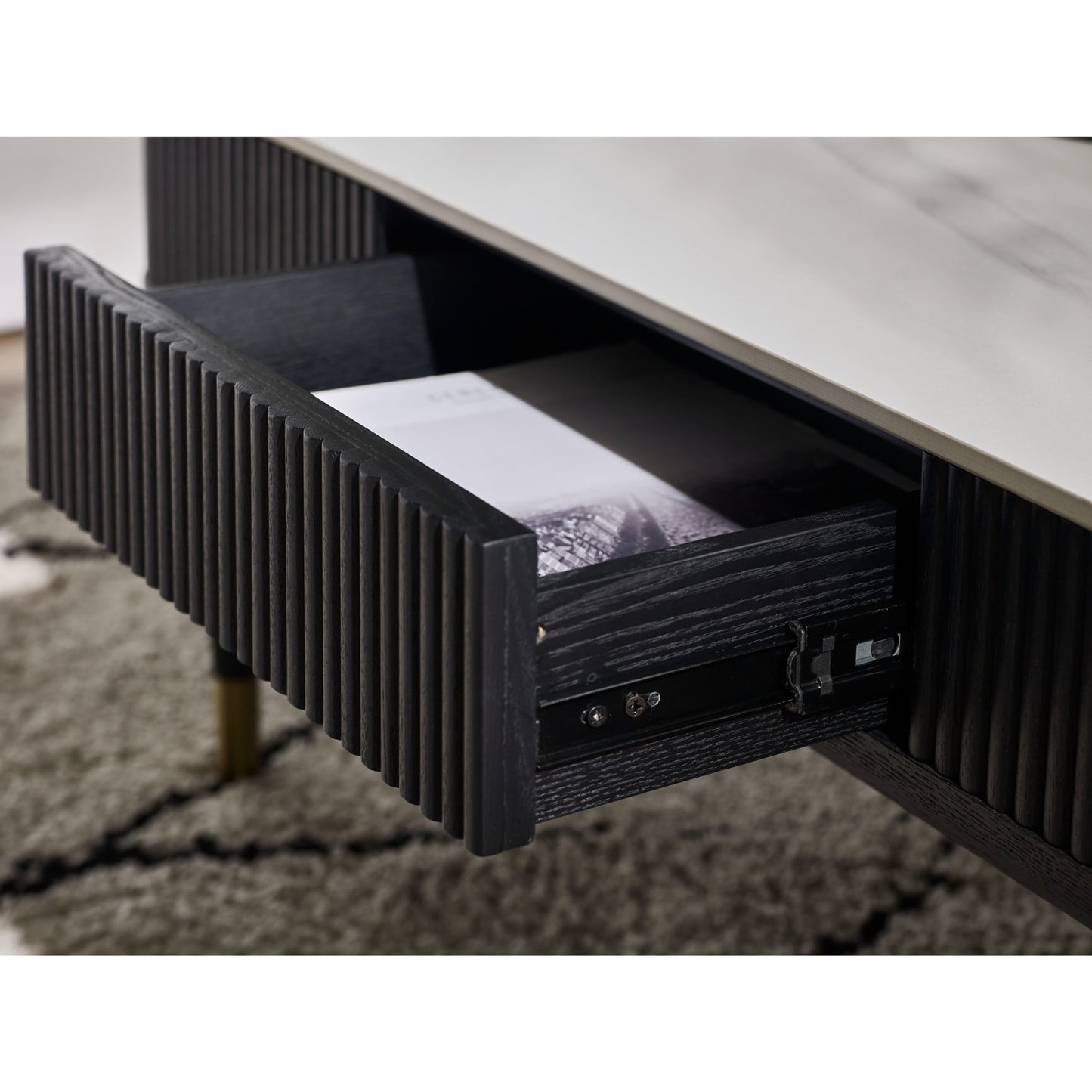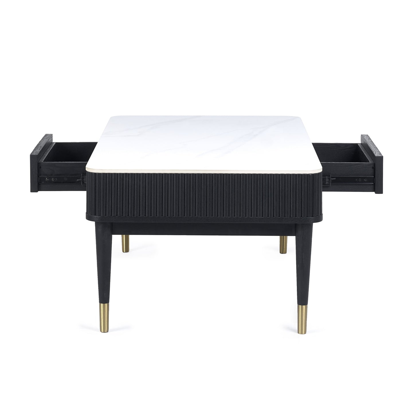 | Name | Louis Fluted Stone Top Coffee Table With 2 Drawers - Black |