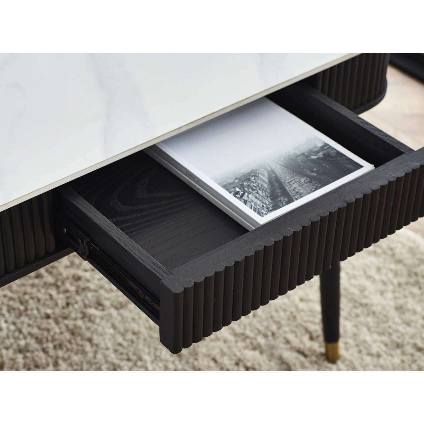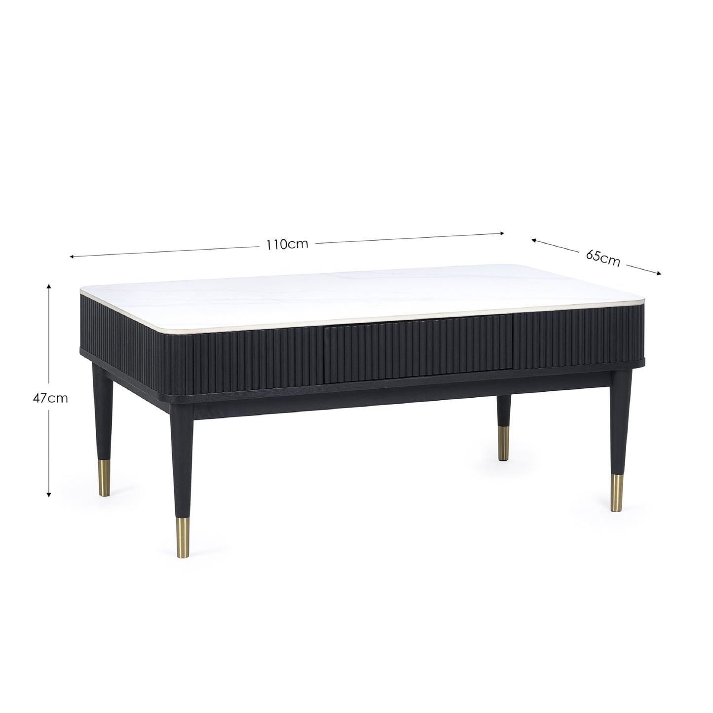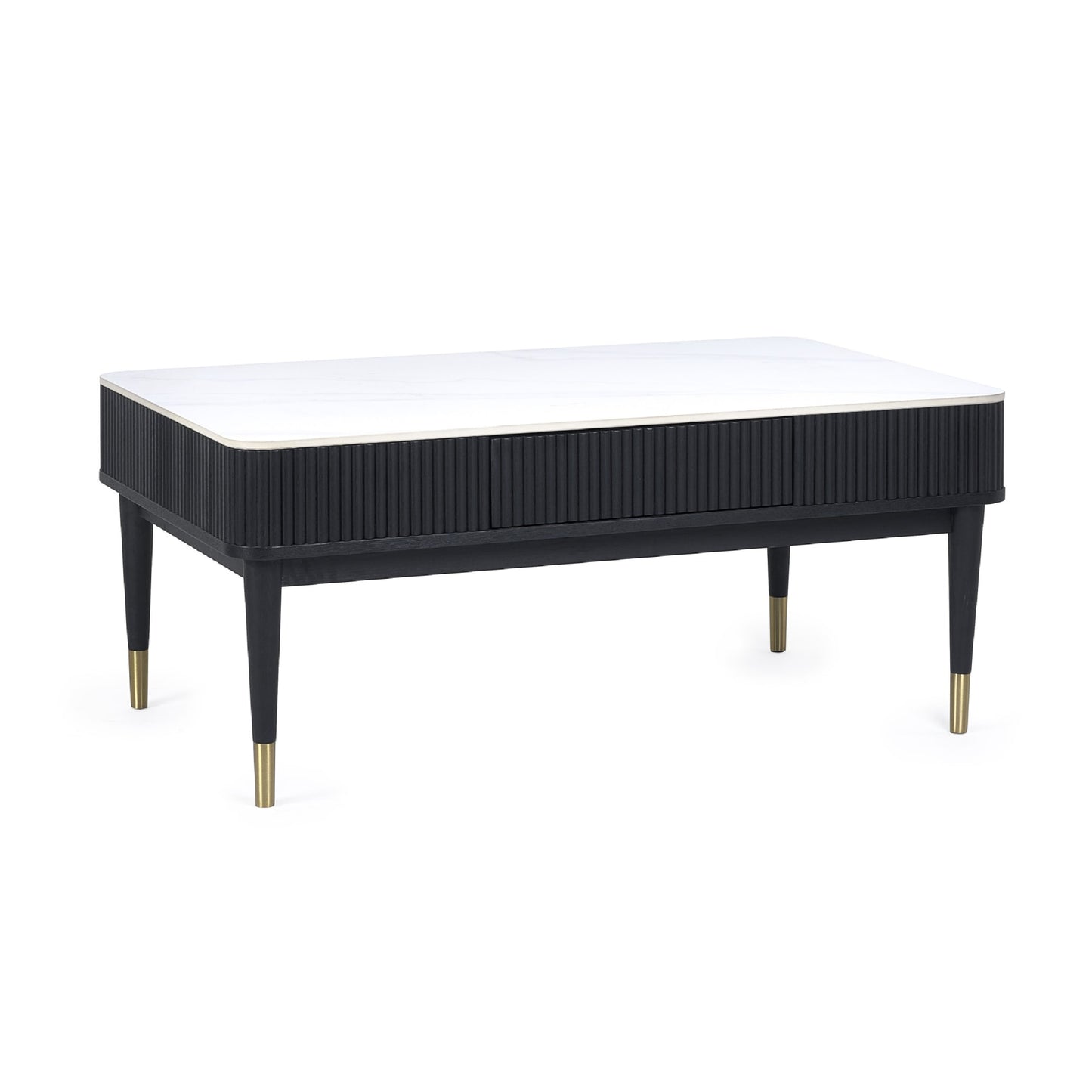| Name | Louis Fluted Stone Top Coffee Table With 2 Drawers - Black |
