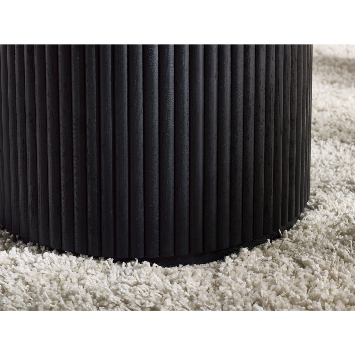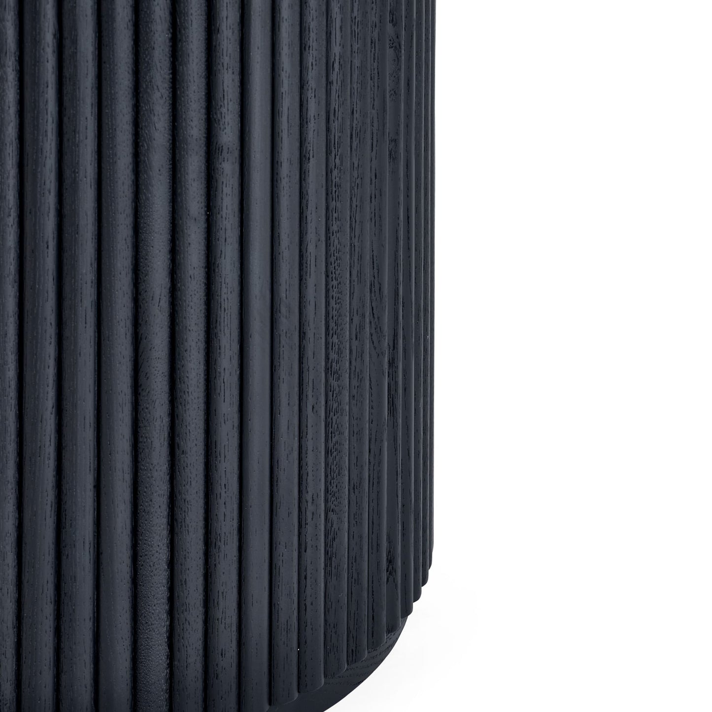 Elevate your space with the Louis Drinks Table in Black, a luxurious addition that seamlessly combines sleek design with opulent detailing. Finished in sumptuous matt black, this table showcases panelled fluted detailing on a pedestal design, creating a sophisticated focal point. The round base adds a touch of modern elegance, effortlessly blending timeless charm with contemporary style. Its top provides the perfect space for drinks, adding both functionality and style to your space. With simple assembly, you can quickly transform your living area with this exquisite piece.