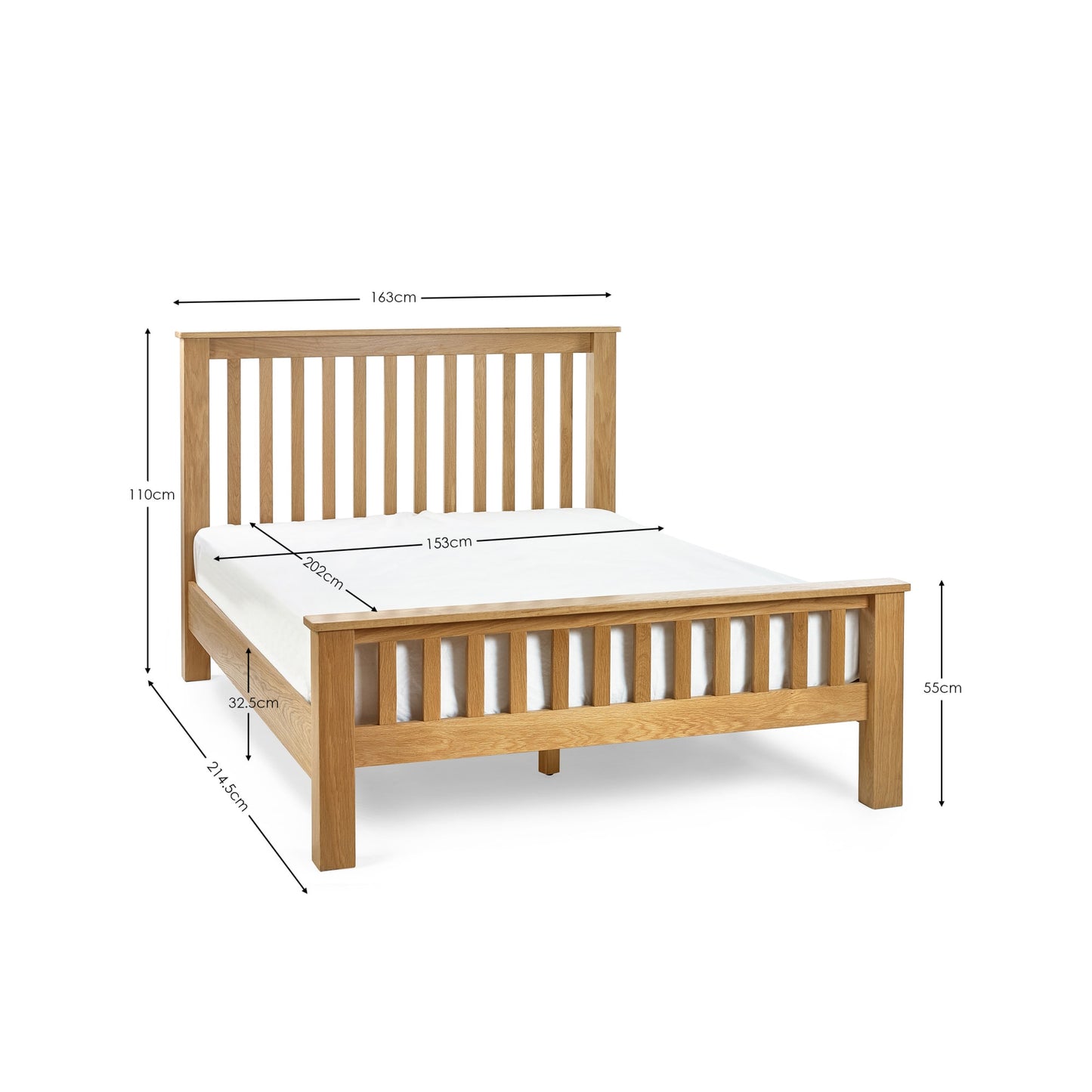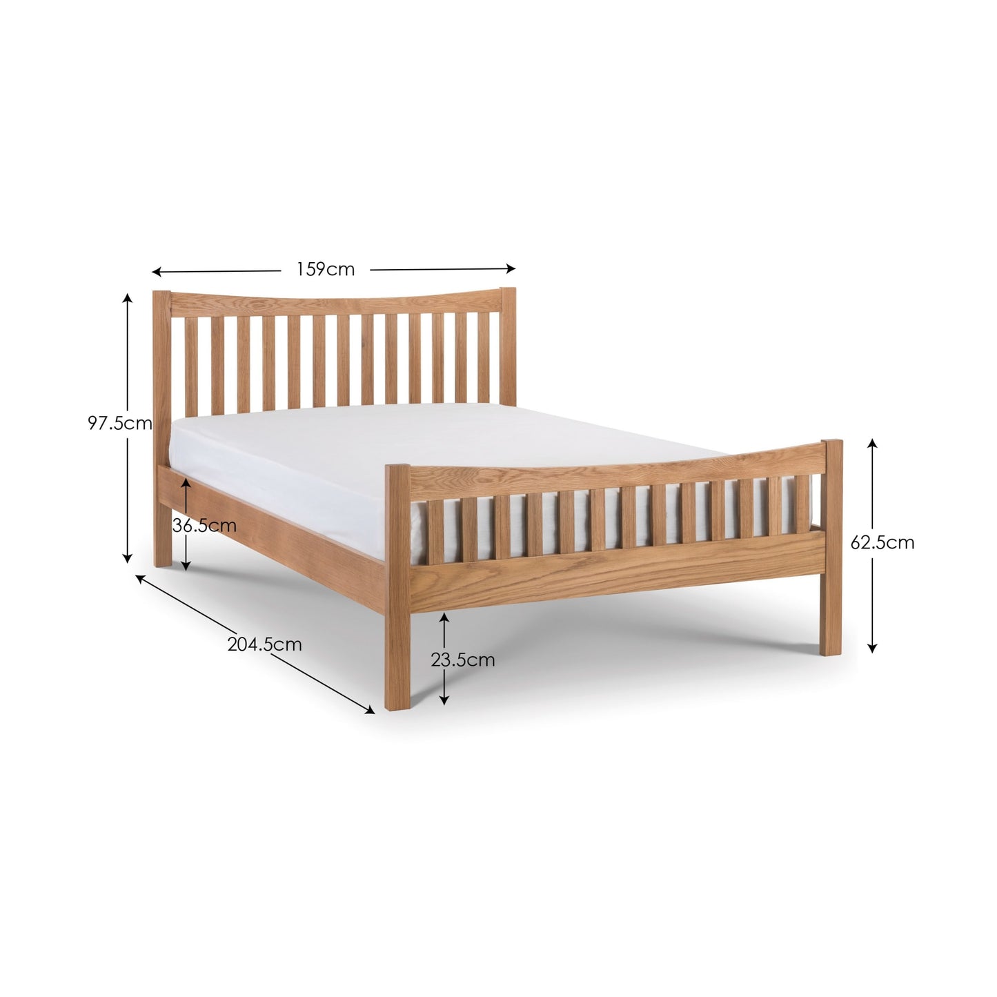 Crafted from solid oak and oak veneers, the simple yet stylish design of the Mallory High Footend Bed brings a real presence to any bedroom. This is a robust and durable bed, with a slatted sleeping base ensuring comfort and prolonged mattress life. Available in 135cm and 150cm sizes