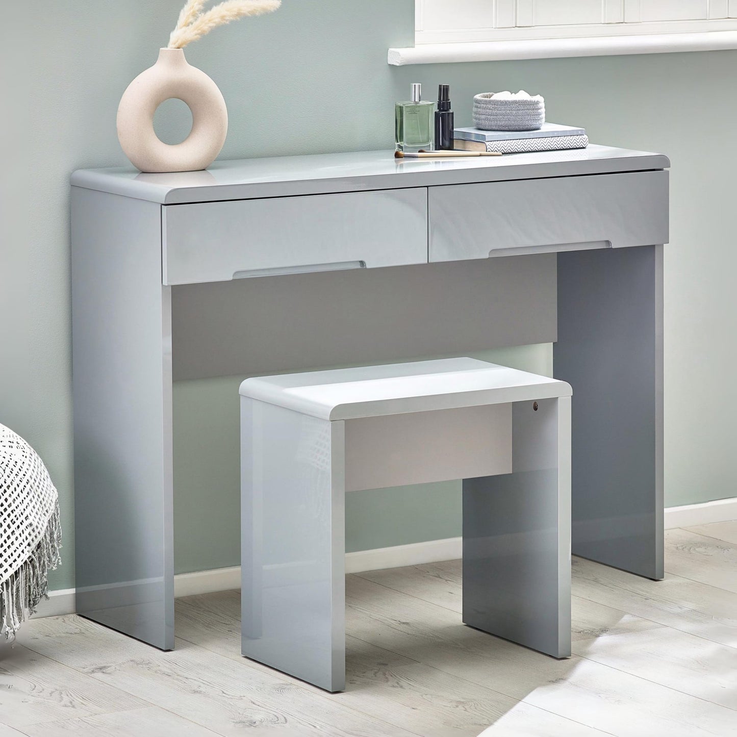 - Stunning grey high gloss lacquer.