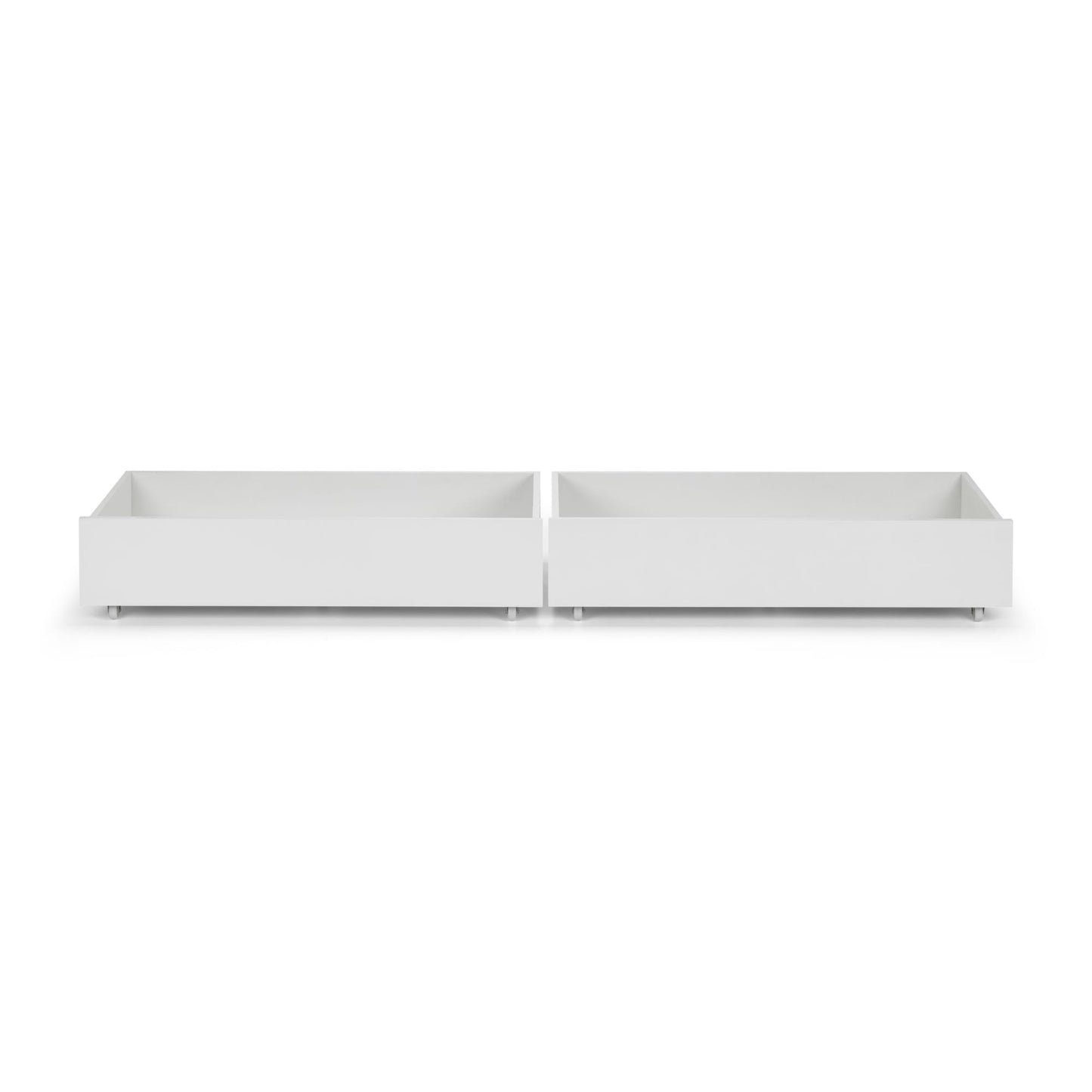 The Set of 2 Manhattan Underbed Drawers are available for extra storage for the Manhattan Bookcase Bed. Finished in a white high gloss, these drawers are on casters that can be pulled out at ease.