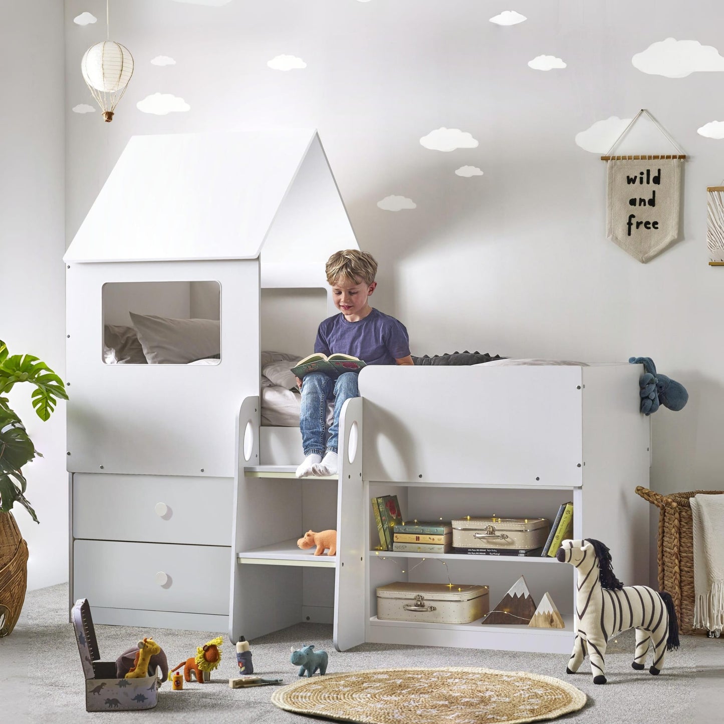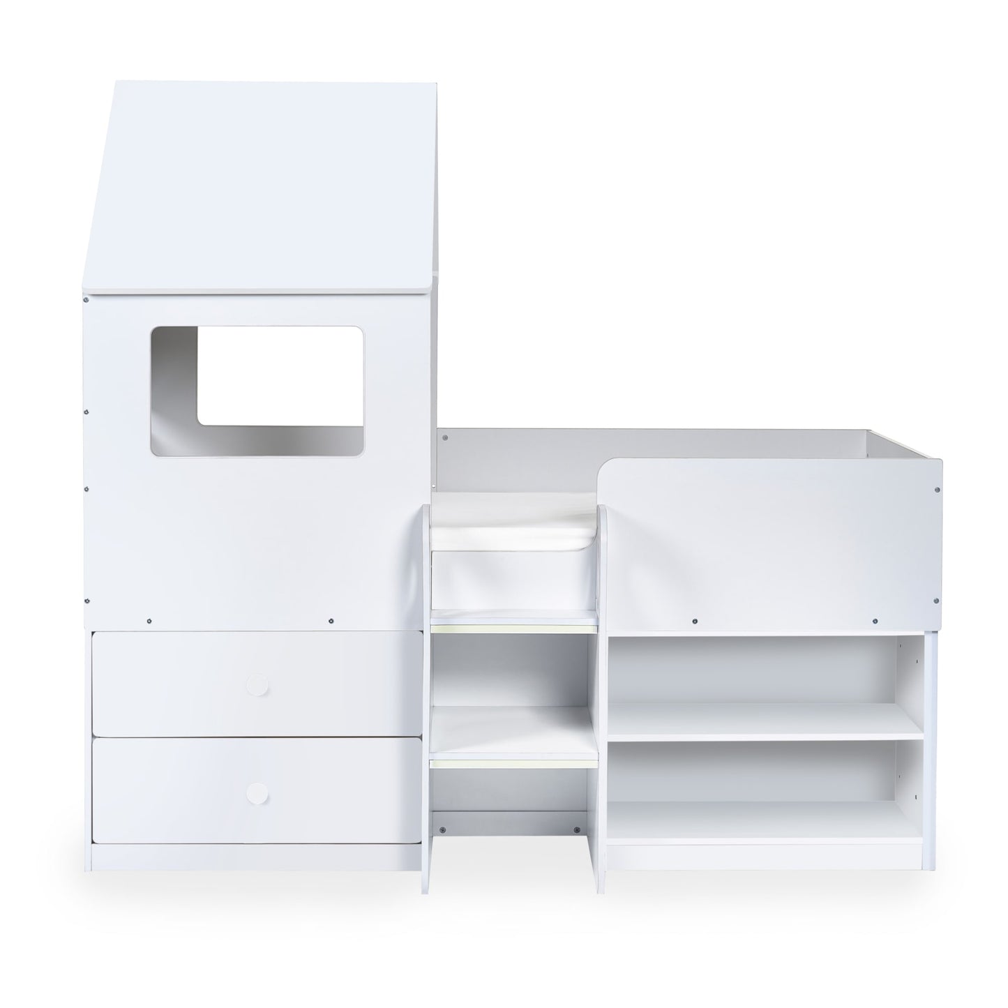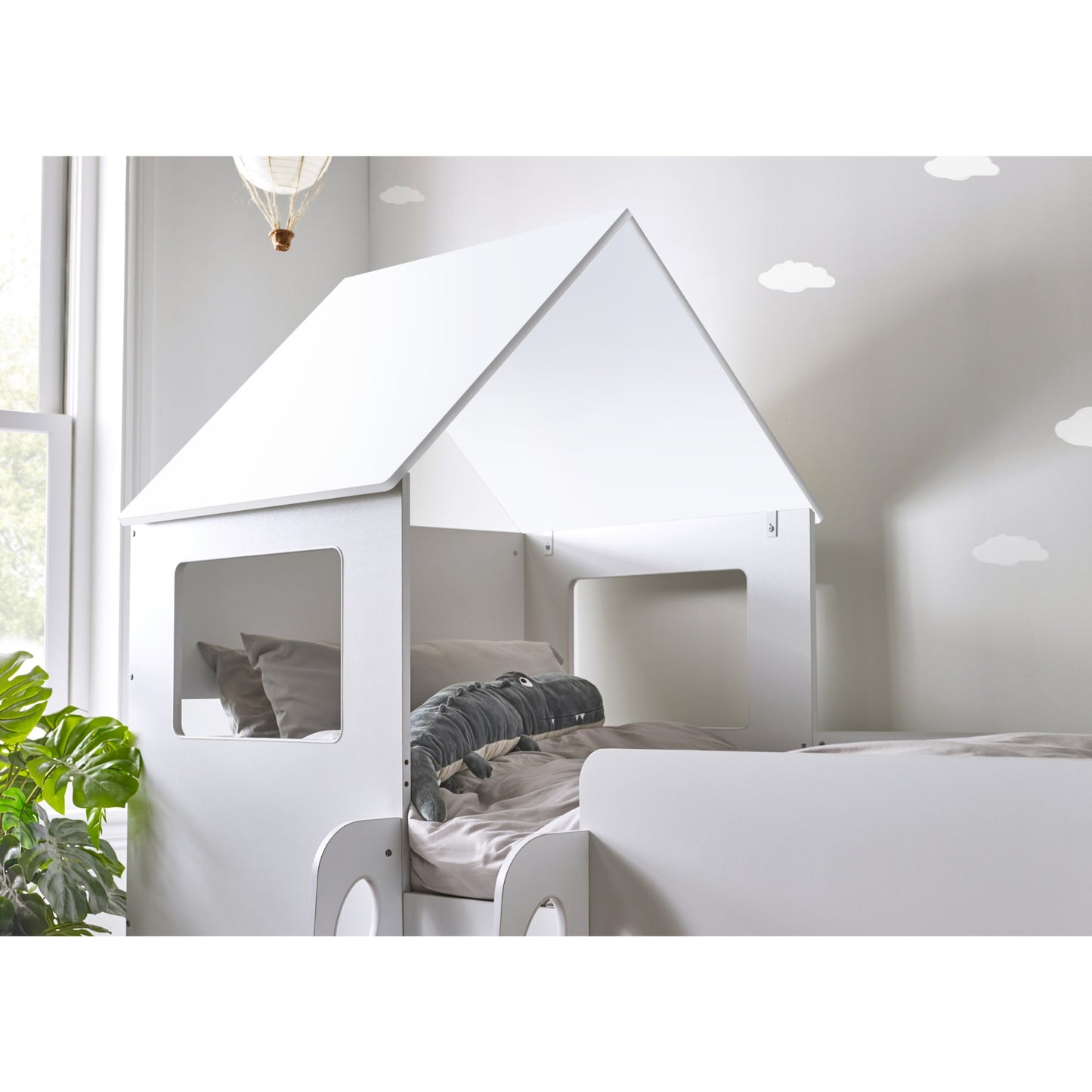 - Captures your child's imagination with a delightful white finish in a magical house-style bed.
