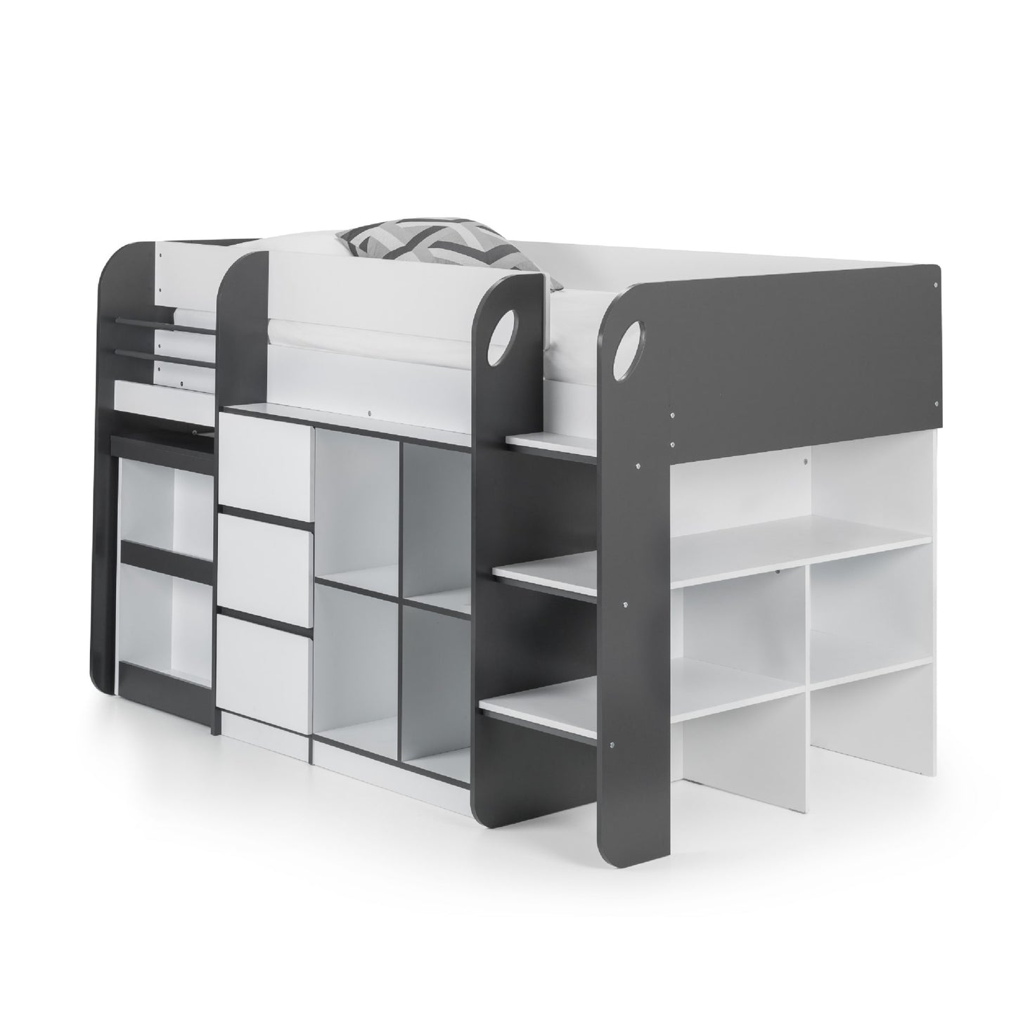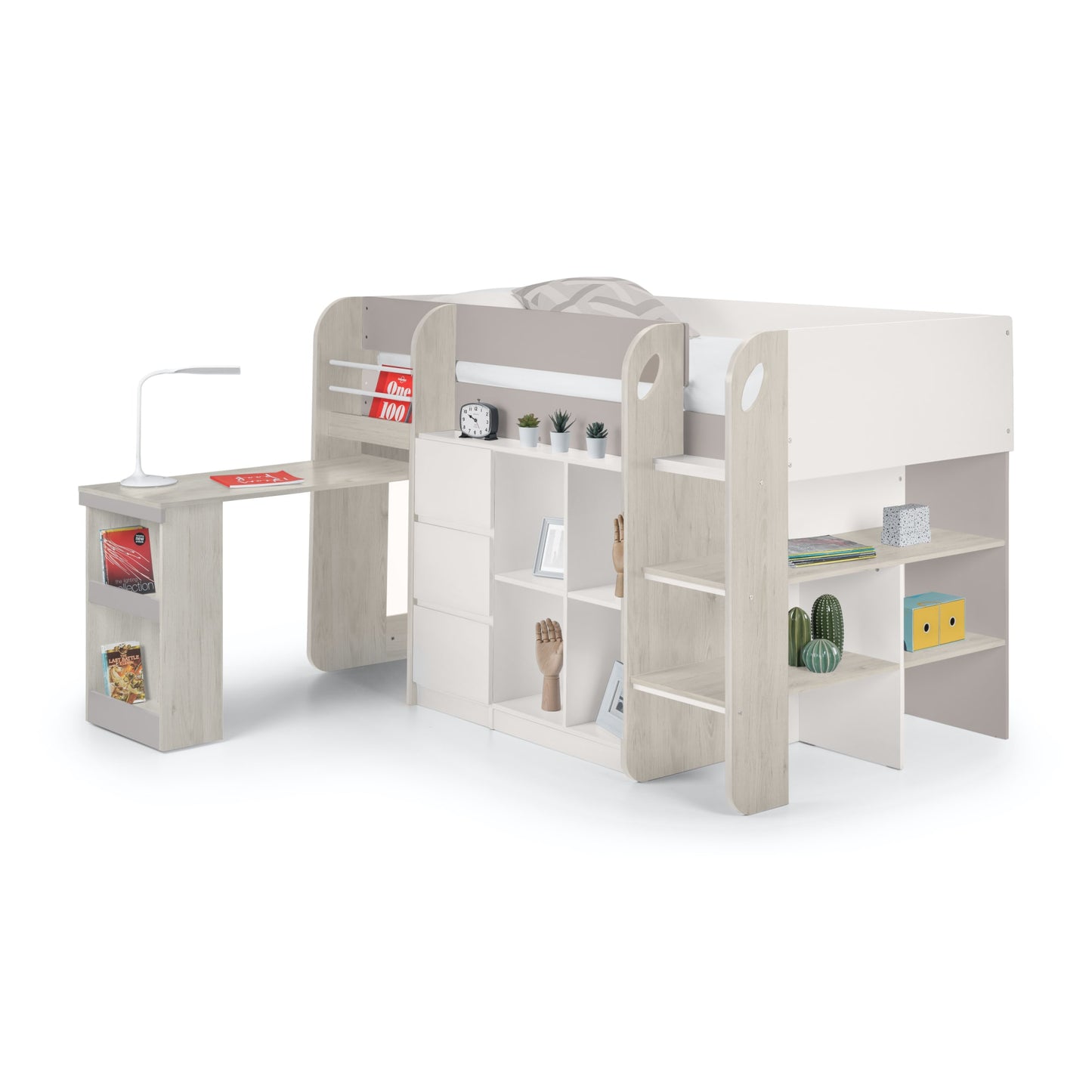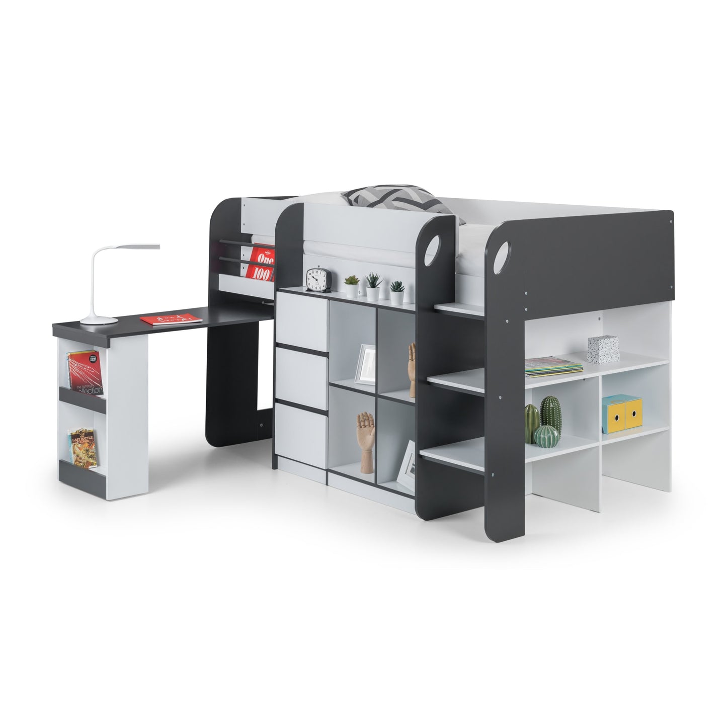 • What’s Included: The purchase includes the Julian Bowen Saturn Midsleeper frame with built-in desk, shelving units, and drawers; mattress sold separately. Easy-to-follow assembly instructions provided.