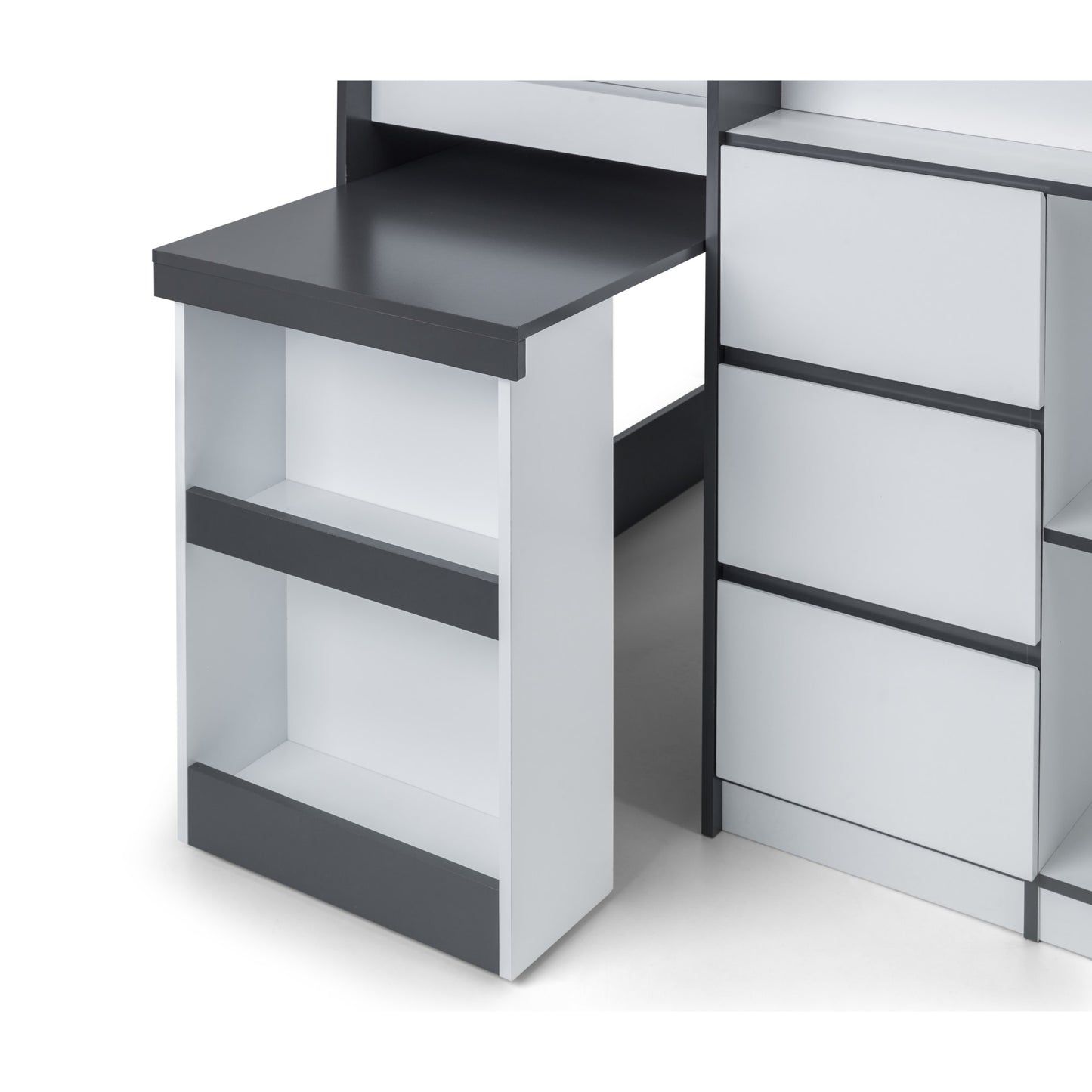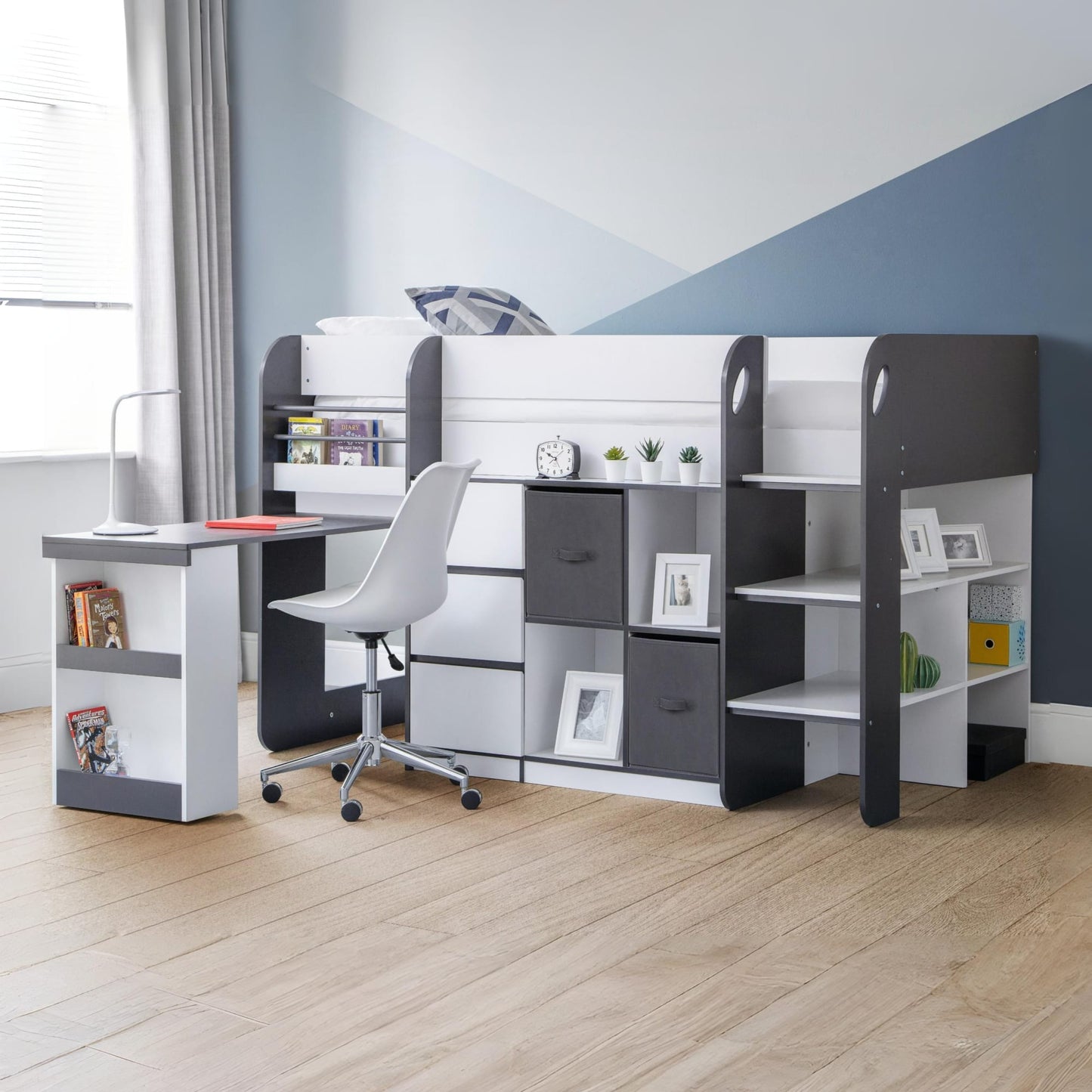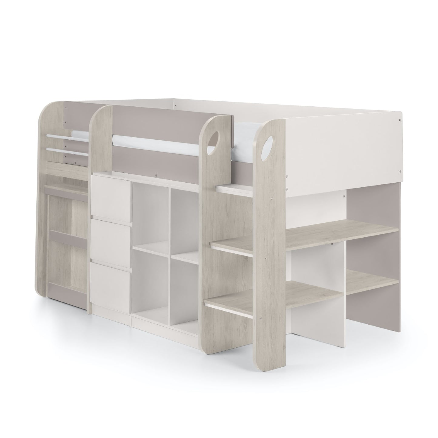 • What’s Included: The purchase includes the Julian Bowen Saturn Midsleeper frame with built-in desk, shelving units, and drawers; mattress sold separately. Easy-to-follow assembly instructions provided.
