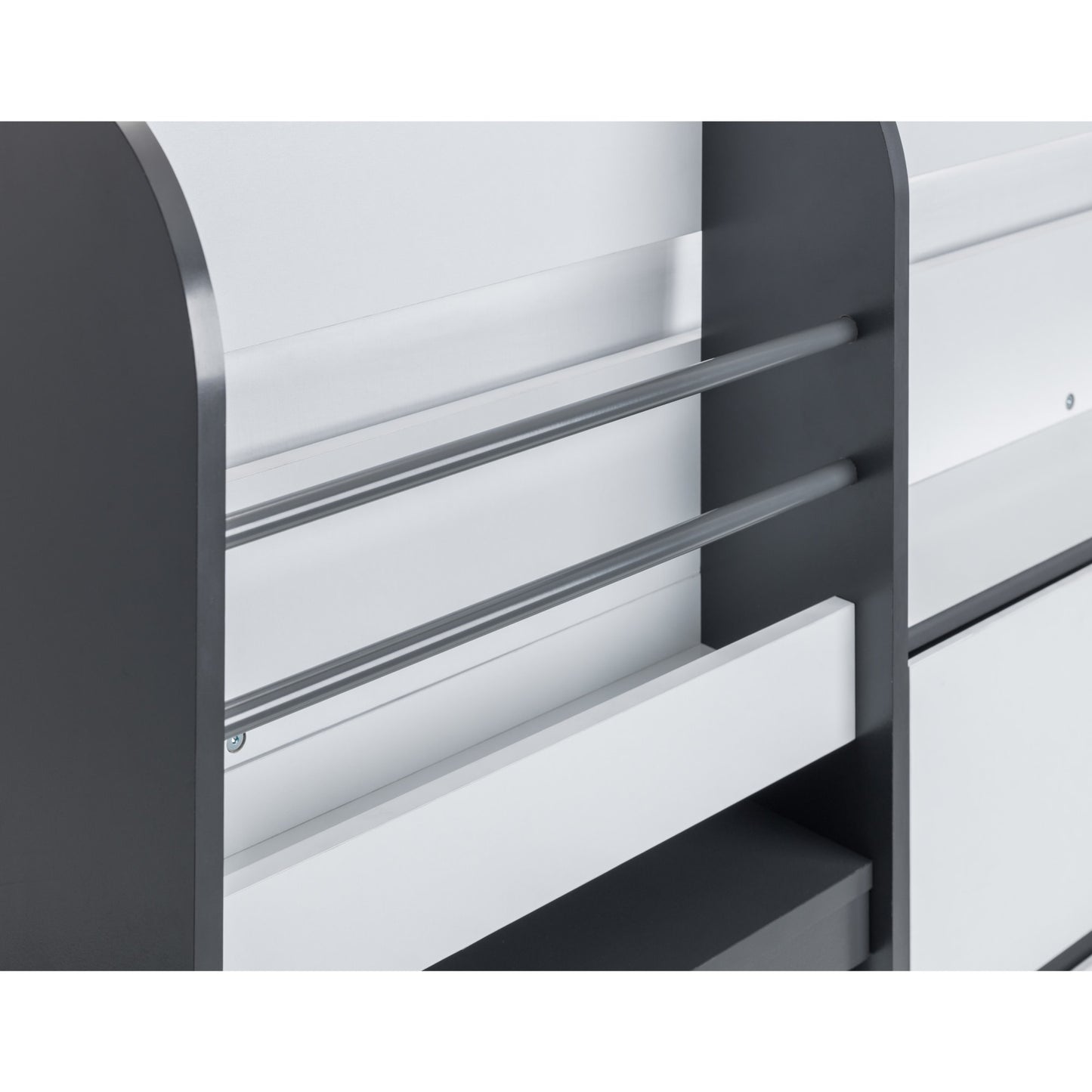 • Contemporary Style: Sleek charcoal grey and white finish adds a modern touch to any bedroom decor. The stylish design fits seamlessly into various interior themes, enhancing room aesthetics.