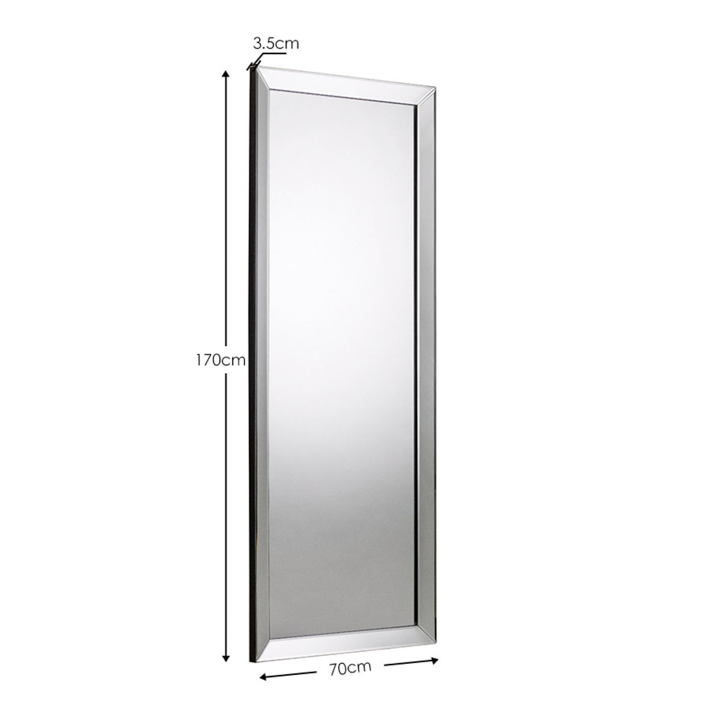 • Dimensions: Height: 170cm, Width: 70cm, Depth: 3.5cm. The generous size offers a full-length view, making it perfect for checking your outfit from head to toe. Spacious and practical.