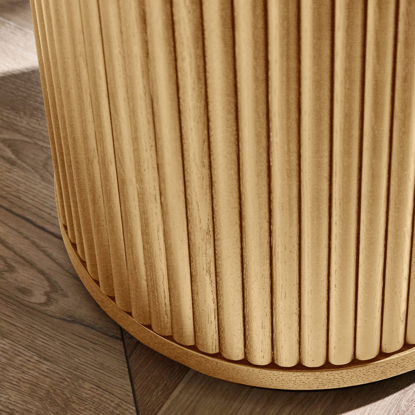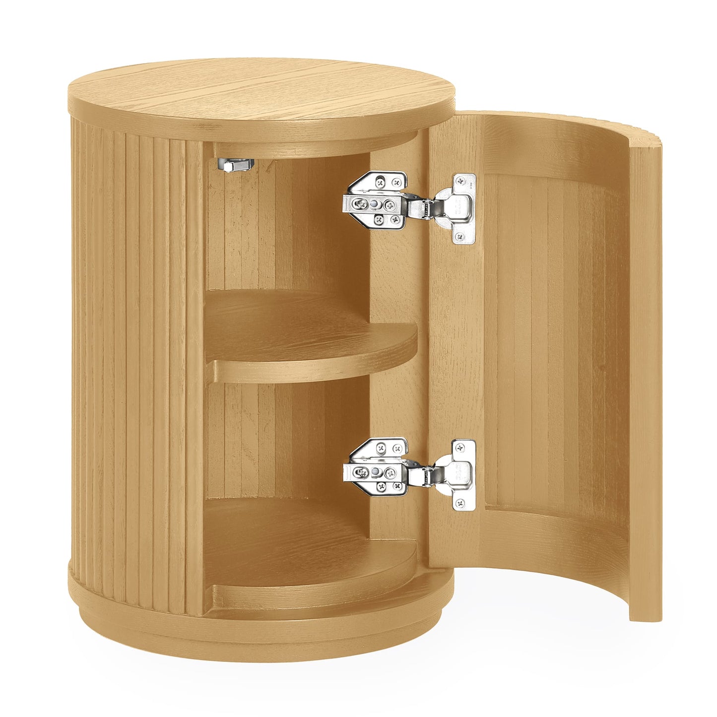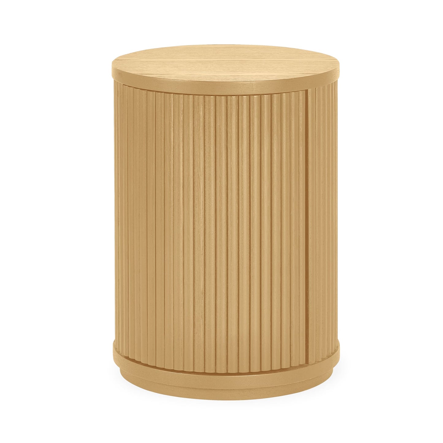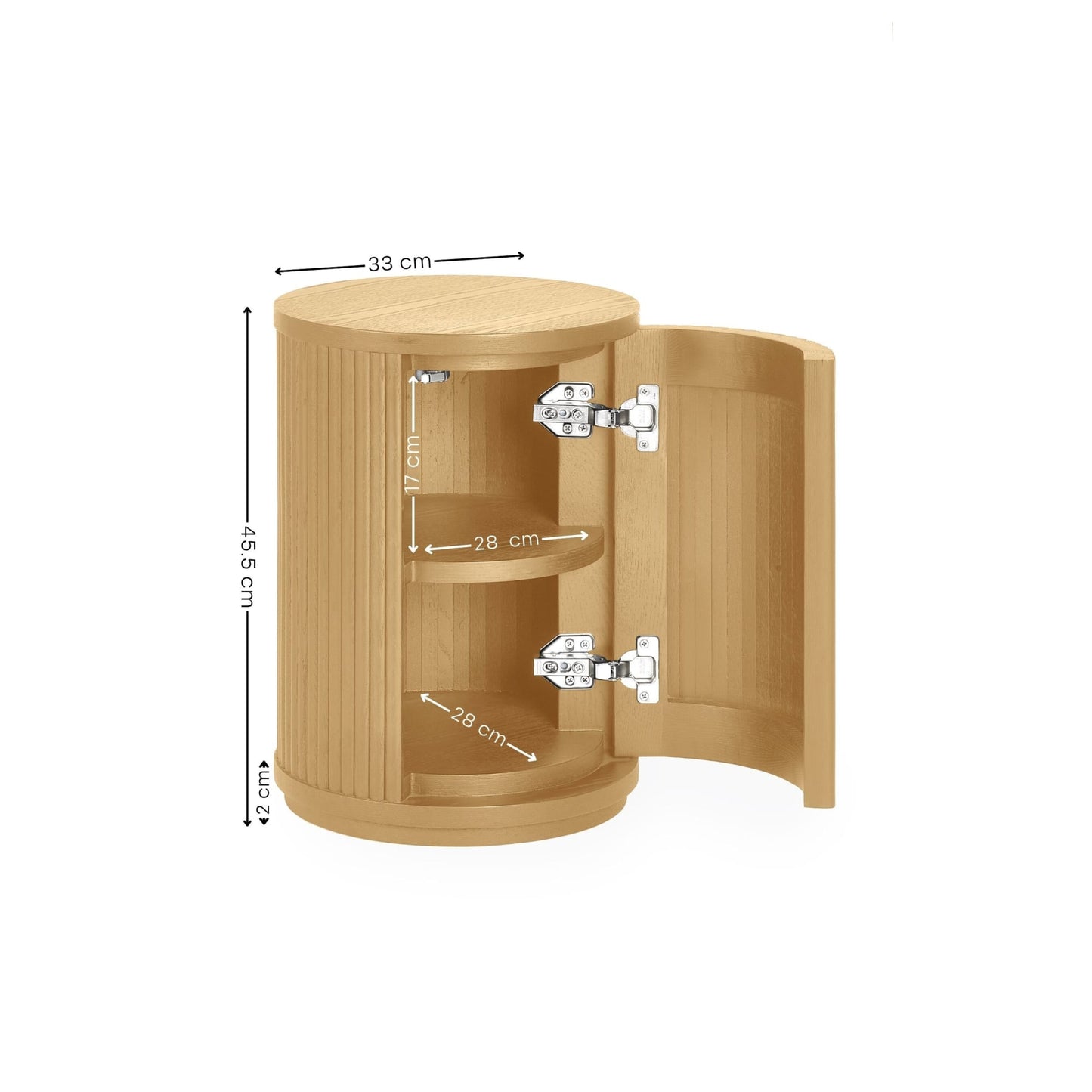 Add a touch of timeless elegance to your home with this light oak-effect side table. Its circular design, accented with refined fluted detailing, creates a charming centerpiece in any room. The soft, natural finish brings warmth and sophistication, while the push-touch door opens to reveal hidden storage for your essentials. Perfect for displaying décor or keeping everyday items close at hand, it blends practicality with style.