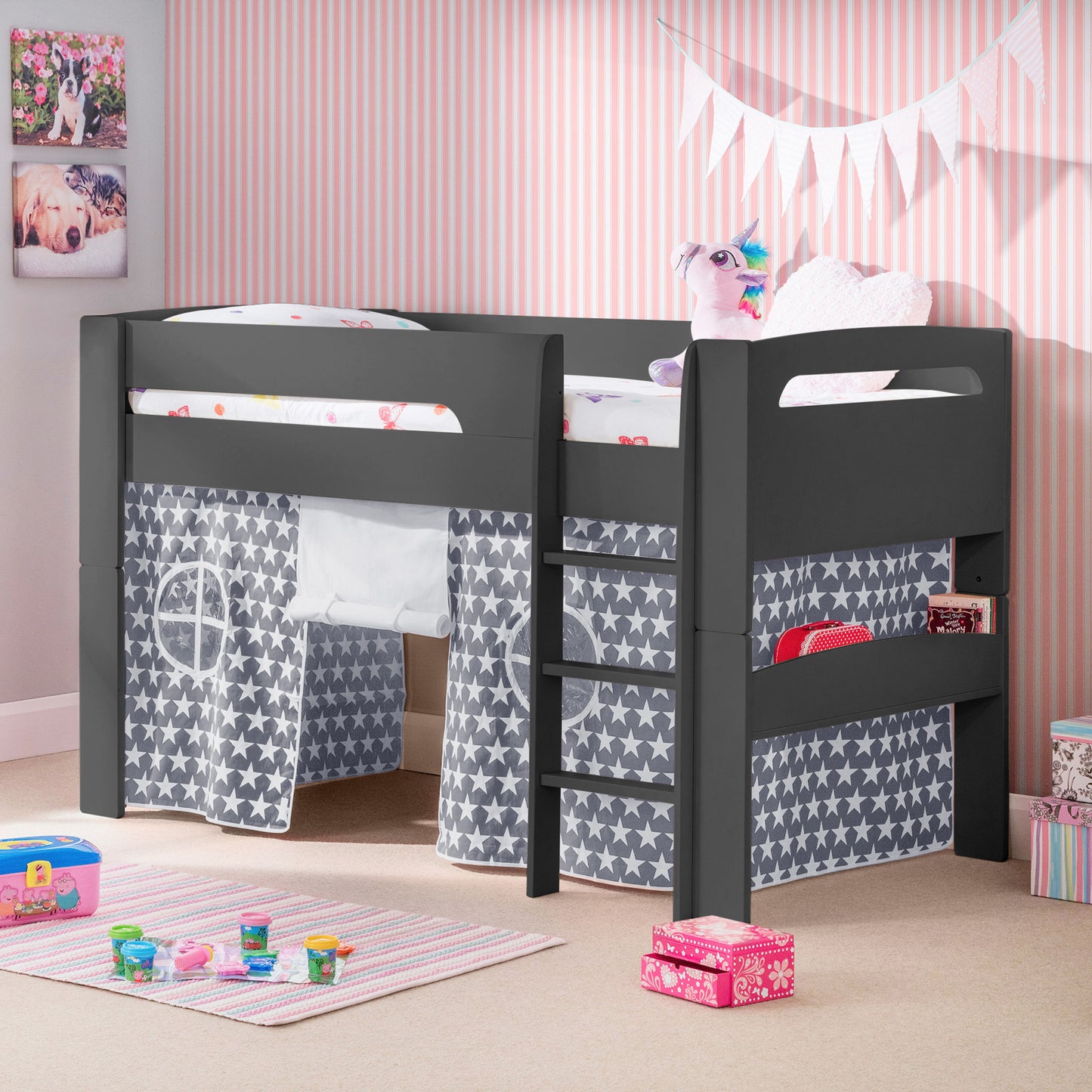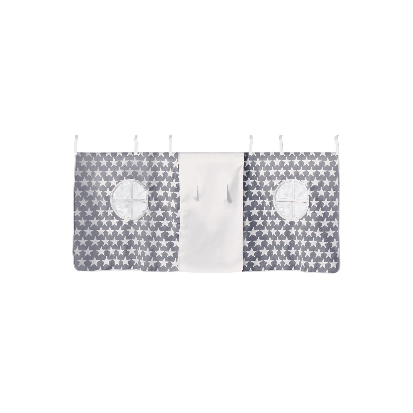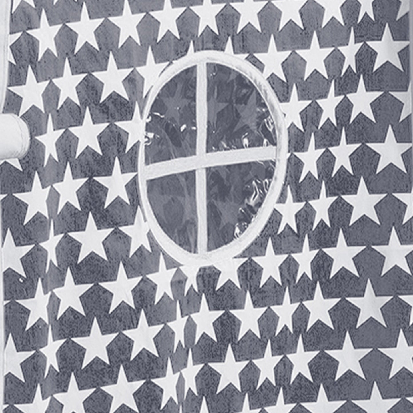 Turn bedtime into a magical escape with this grey star tent, finished in a soft grey linen fabric sprinkled with star details. It transforms the space beneath the bed into a cosy hideaway for reading, playing, or simply letting little imaginations run wild. Featuring a white roll-up door with straps and two circular windows, it allows easy access and playful peeks while keeping the space inviting. Easy to attach and remove, it creates a vibrant play area during the day and helps children wind down for bedtime at night. A simple way to add fun, style, and a touch of magic to their bedroom setup. No assembly required.