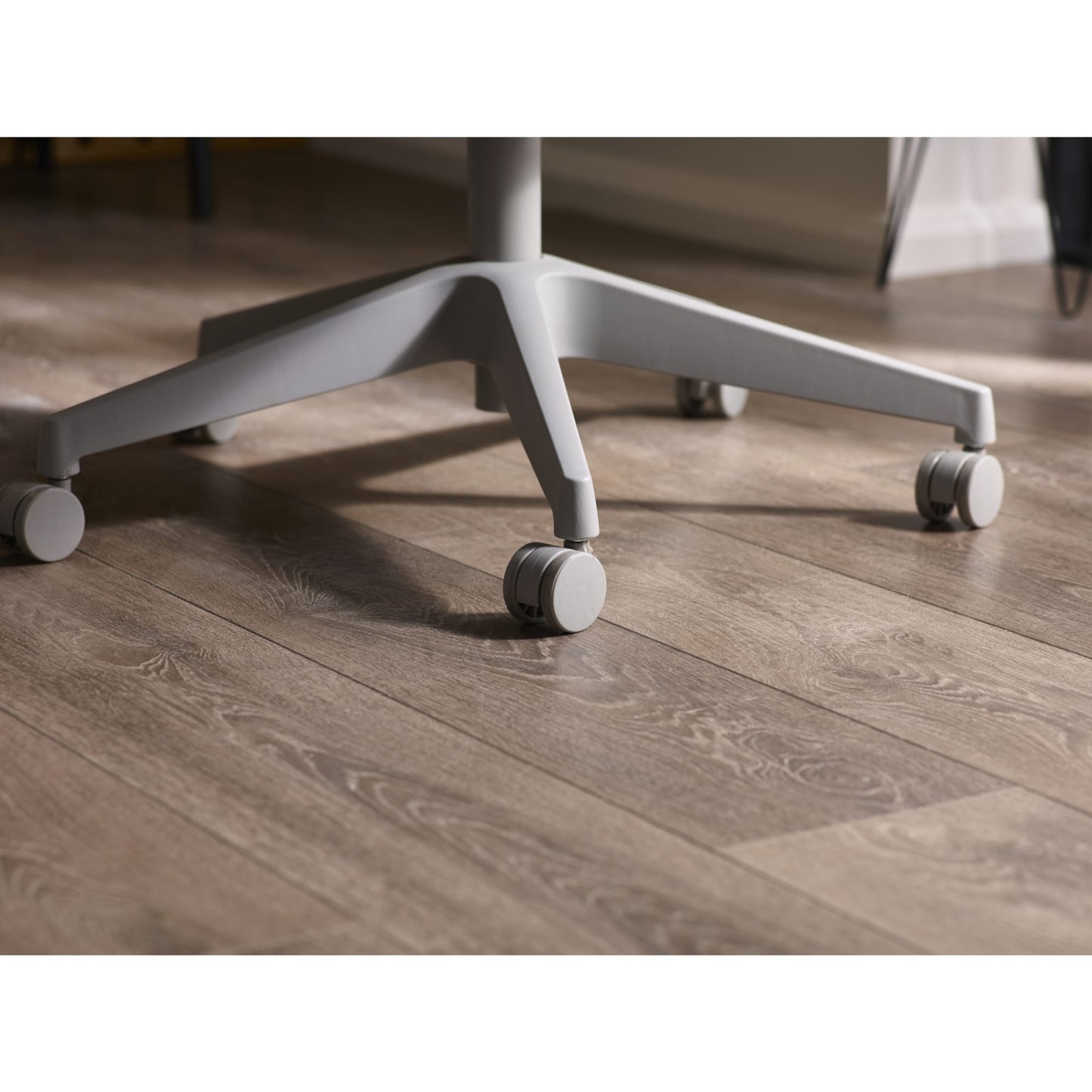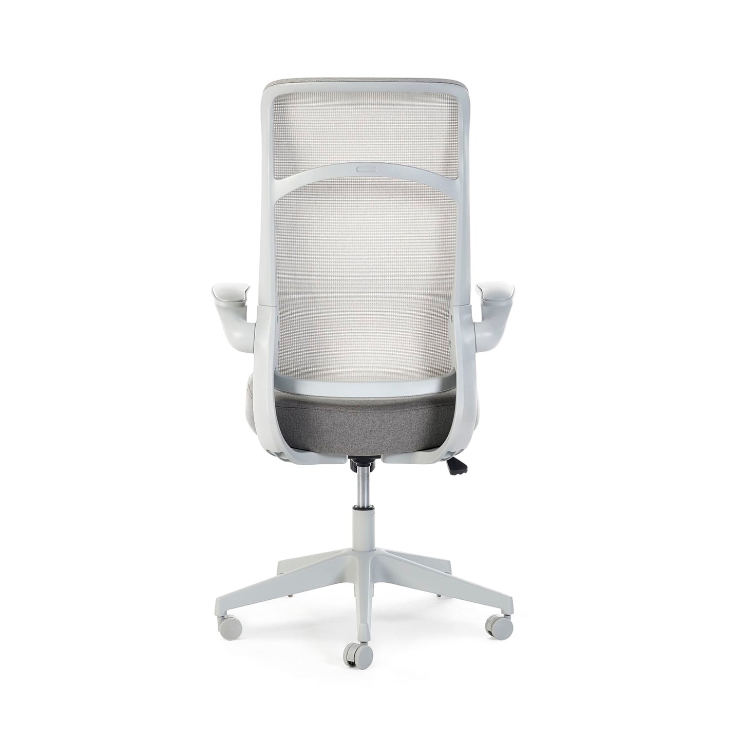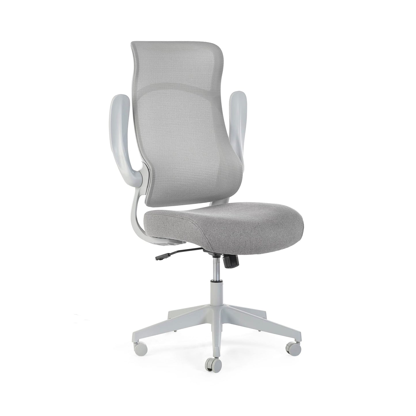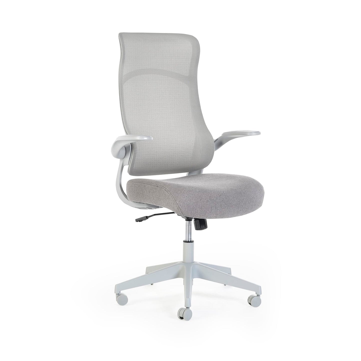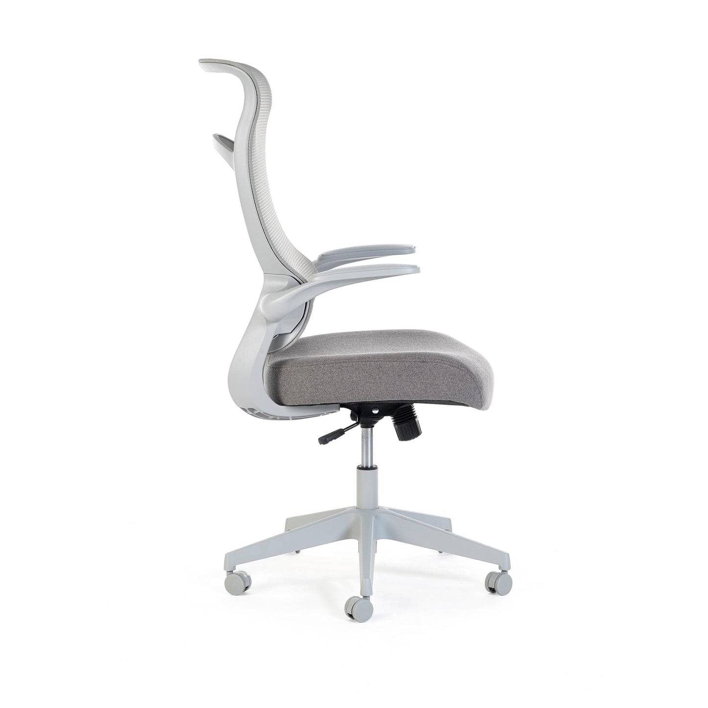 - Enhances comfort and productivity with a flip-up armrest and a soft-touch upholstered seat featuring a sloping front to alleviate leg pressure