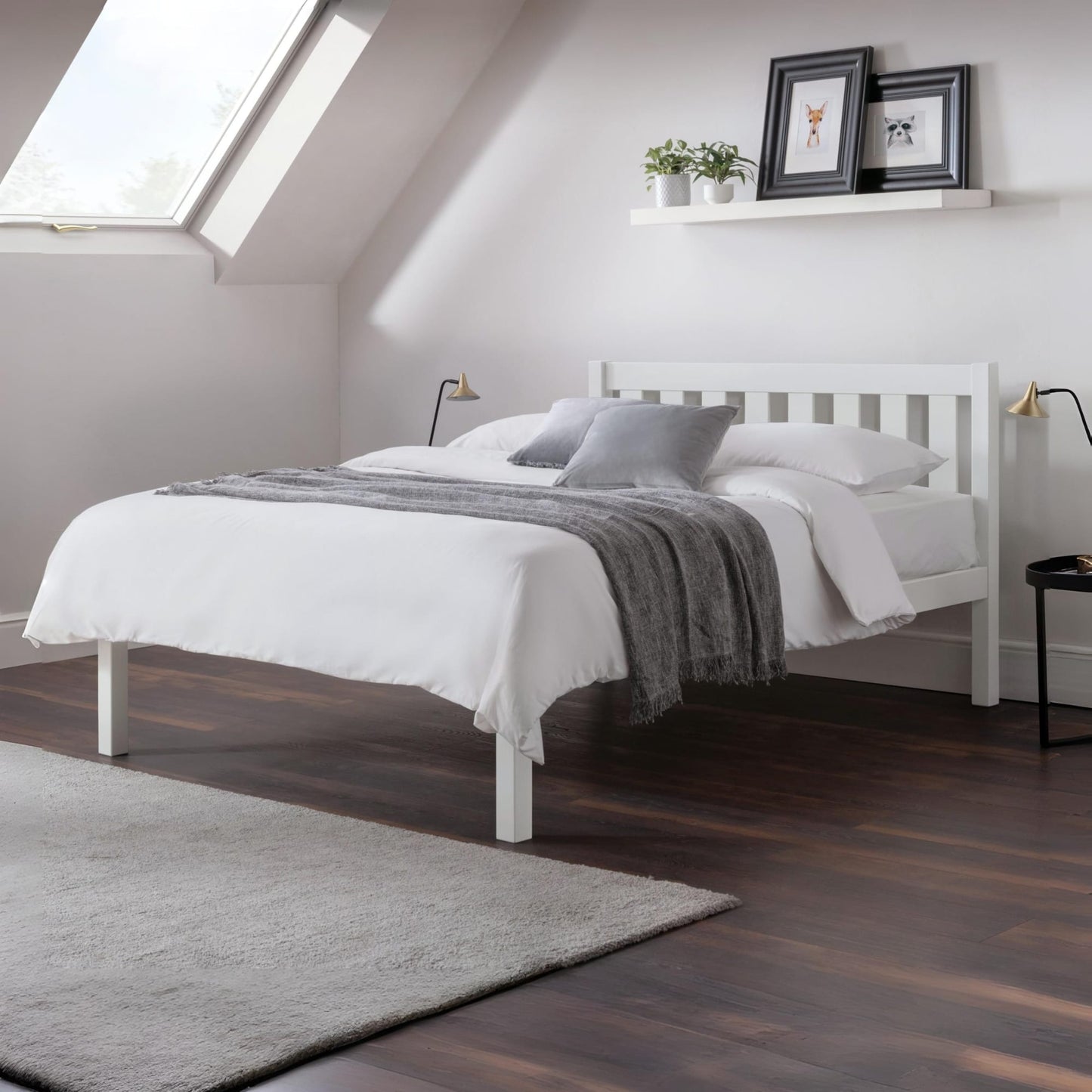Crafted from solid pine with a surf white lacquer, the Luna bed is perfect for a wide range of traditional and contemporary bedroom décor with its simple, yet stunning design. Offering a strong, durable construction, this bed features a solid slatted base, ensuring a comfortable night's sleep. The perfect match for the Julian Bowen Maine Bedroom collection.
