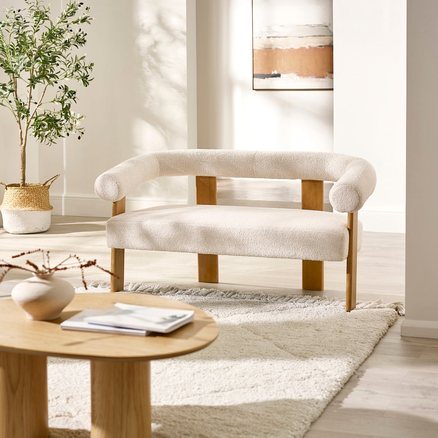 | Name | Freya White Boucle Upholstered 2 Seater Sofa with Solid Wood Legs |