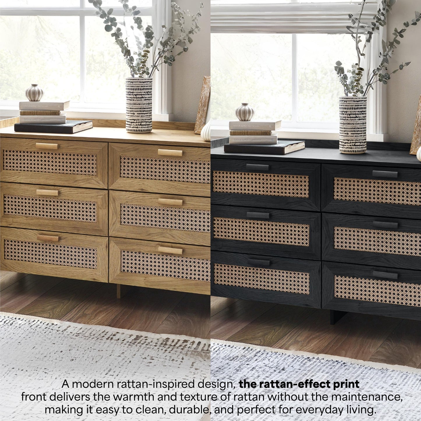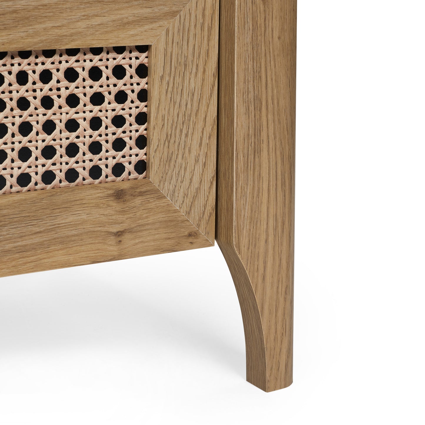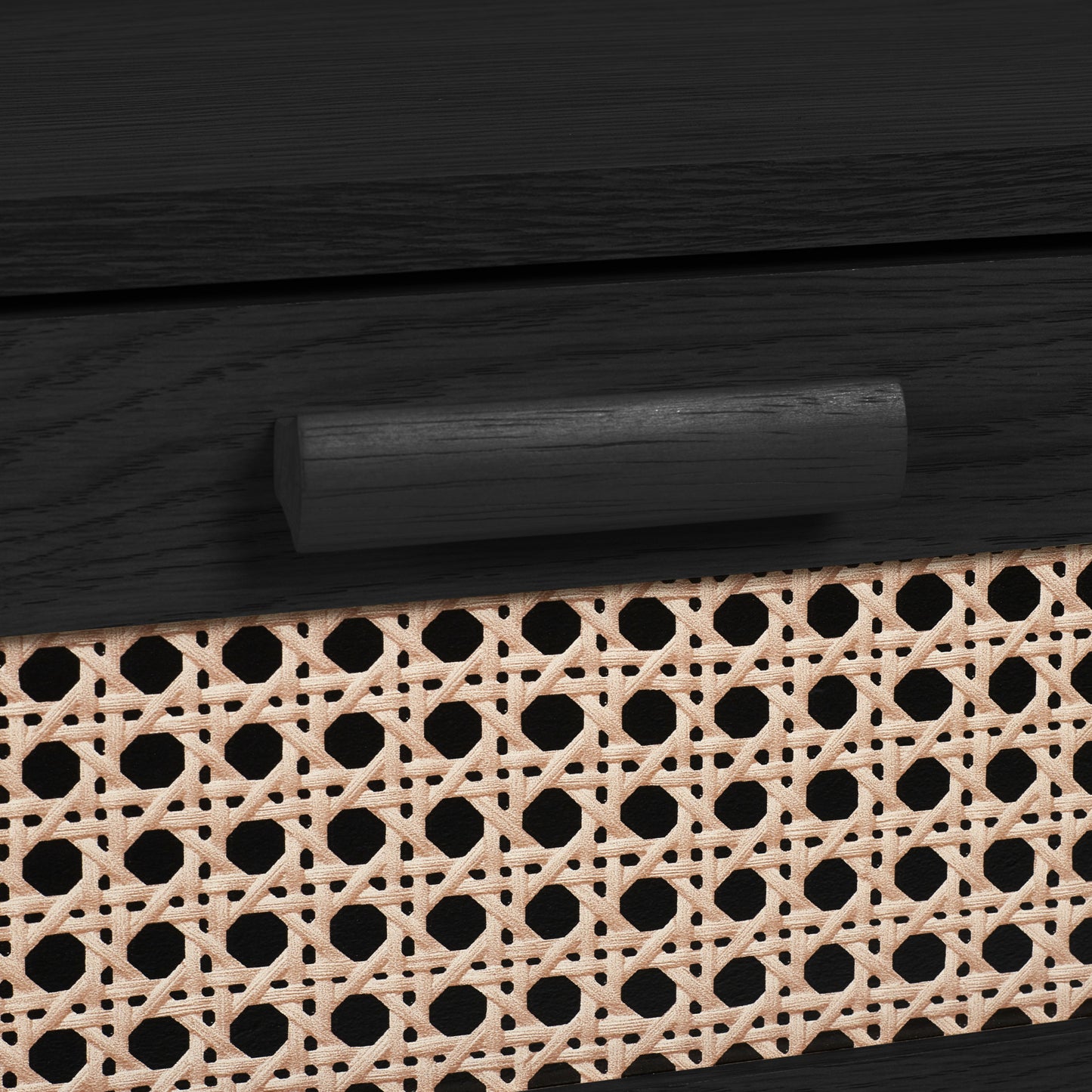 • The rattan print sticker front adds a unique textured look, enhancing the charm of the black ash finish.