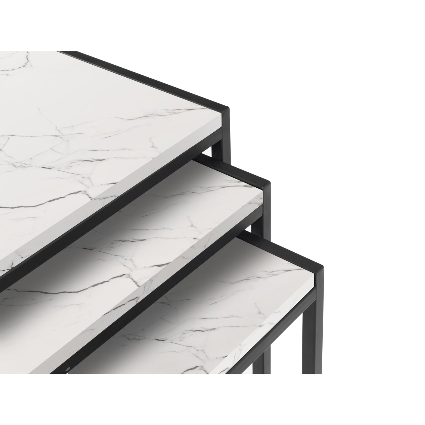 - Sophisticated and Space-Saving: The Julian Bowen Tribeca Nest Of 3 Tables in black/white marble offers a chic and practical solution for your living room. Perfect for small spaces, these tables combine style and functionality.