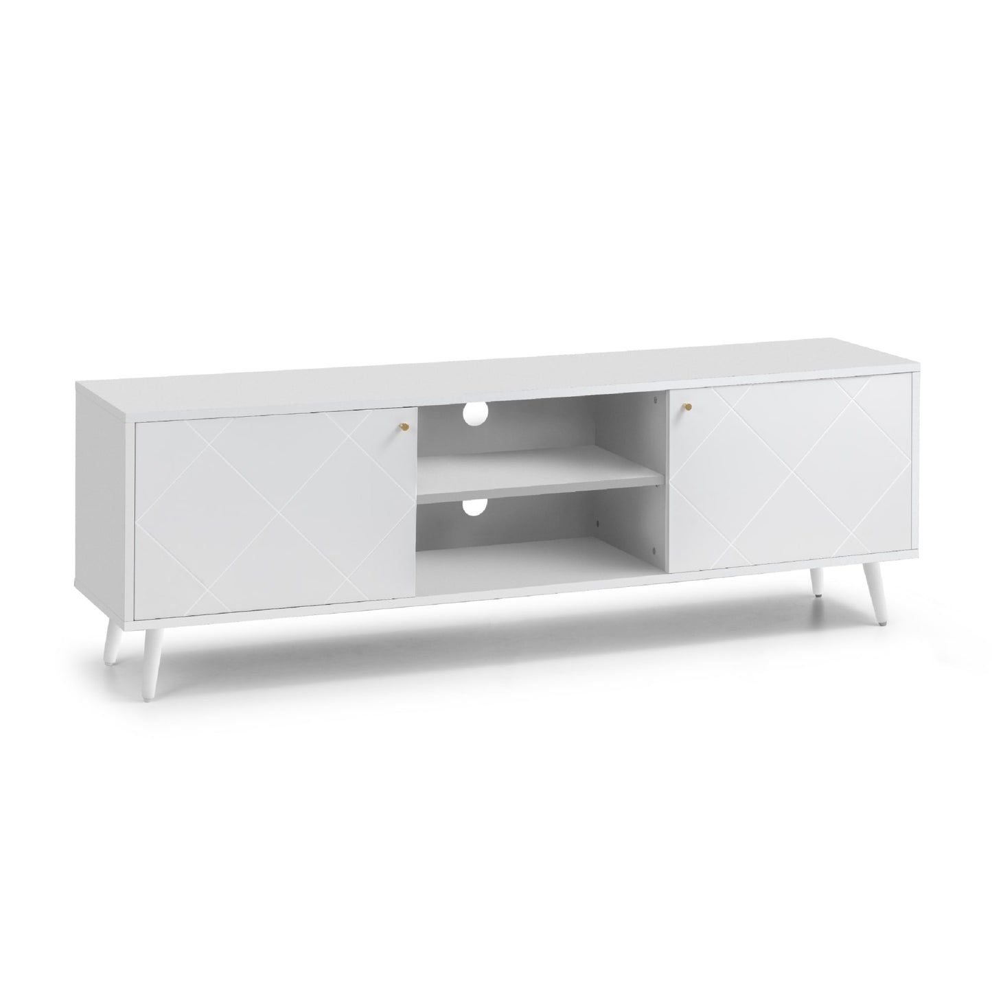 A subtle, yet striking linear pattern creates the eye-catching slickness of the Moritz TV Cabinet. Featuring two shelves with two holes for cables to sit neatly through the back of the cabinet, and two cupboard doors, with simplistic, yet stunning gold handles. The Moritz TV Cabinet is available in White or Grey, offering great functionality that looks good with any modern décor.