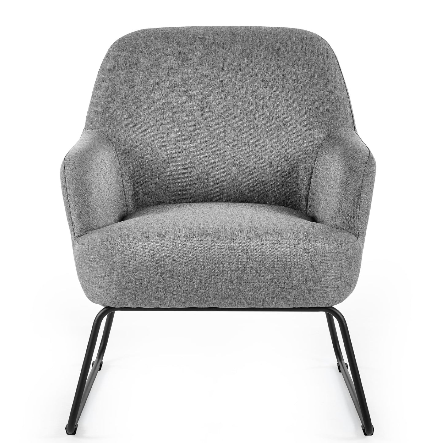 Unwind in style with the Davos Accent Chair, where retro charm meets contemporary comfort. Angled perfectly for a relaxed, reclined seating position, this beautifully designed chair is the ideal spot to kick back after a long day. Its sleek black sled base offers a contemporary twist, combining stability with sleek style, while the plush padding on the arms ensures hours of luxurious lounging. Upholstered in sumptuous grey fabric, the chair effortlessly complements any living area, making it a versatile addition to your decor. Whether you’re curling up with a good book or entertaining guests, this accent chair is the perfect blend of comfort and sophistication, ready to elevate your home. Requires simple assembly for your convenience.