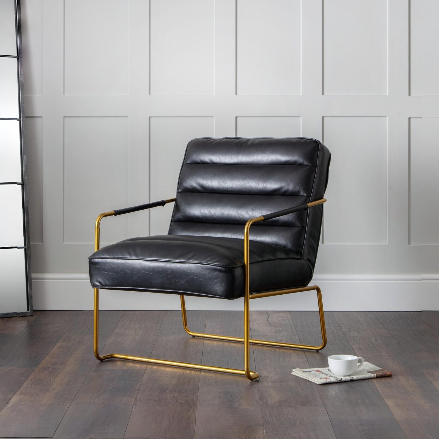 With slick gold hardware and black leather design, the Giorgio is the perfect way to incorporate modern and industrial elements to your home. Whether placed in the office or the lounge, the comfortable padded seat with intricate stitching upon a strong metal frame makes Giorgio the ideal addition to any room.