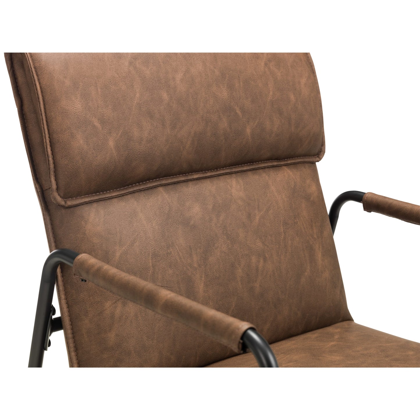 Inspired by a modern, industrial styling, the Gramercy chair is upholstered in a soft faux leather fabric finished in a brown colourway. To chair is designed with a sturdy black metal frame, with a comfortable padded headrest to ensure maximum support. The Gramercy Chair is sure to make a dream scenario in any living space.