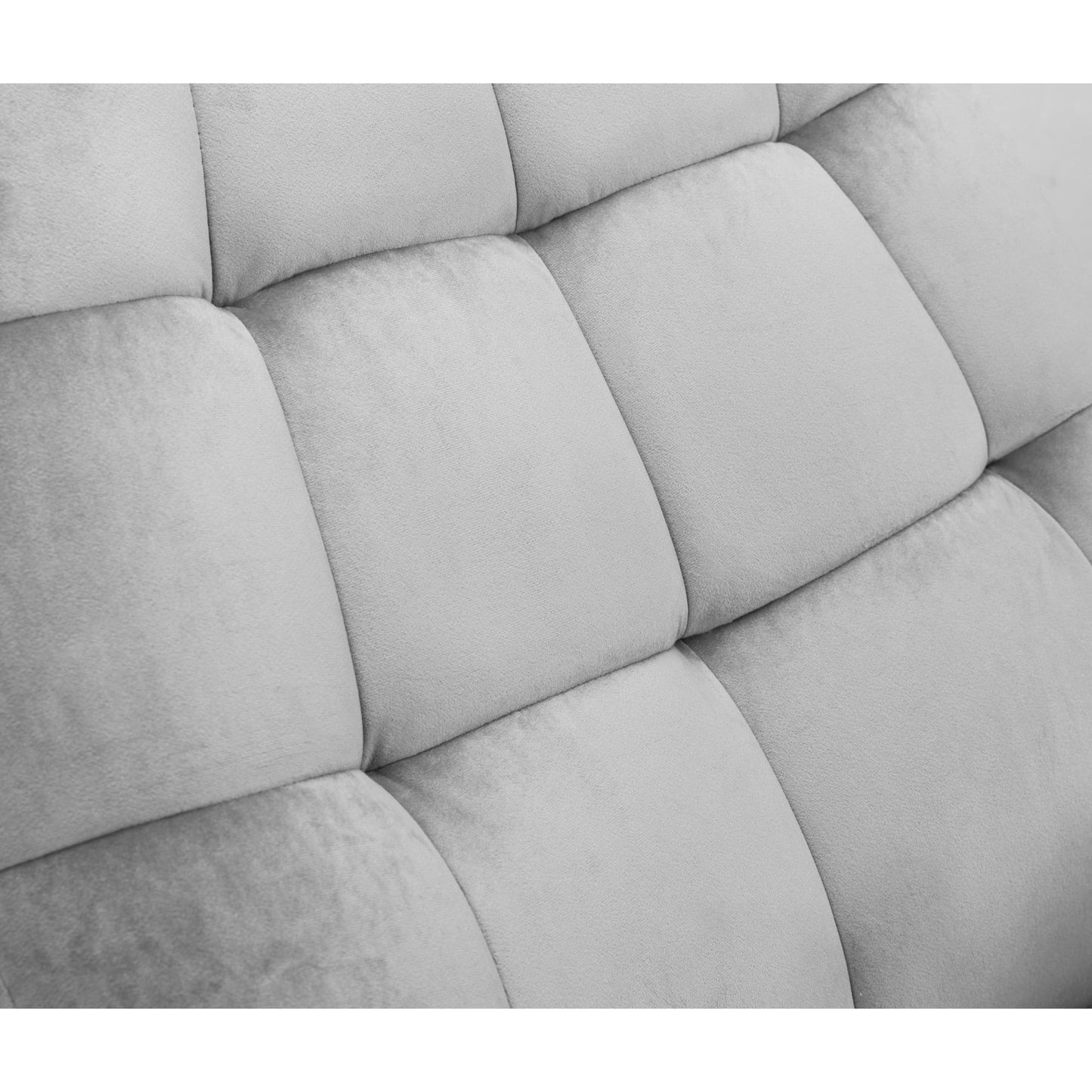 • Upholstered in a grey velvet fabric with a black metal frame.