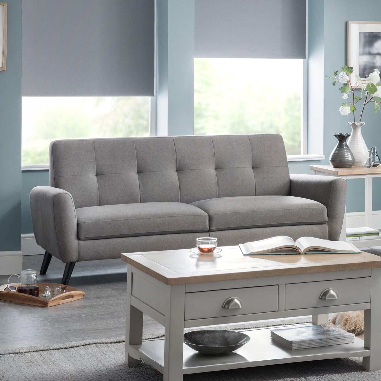 - Versatile Style Statement: The Julian Bowen Monza Sofa’s serene blue hue complements any decor theme, making it an ideal centerpiece for your living space.