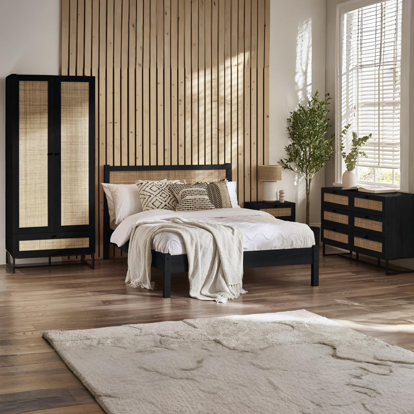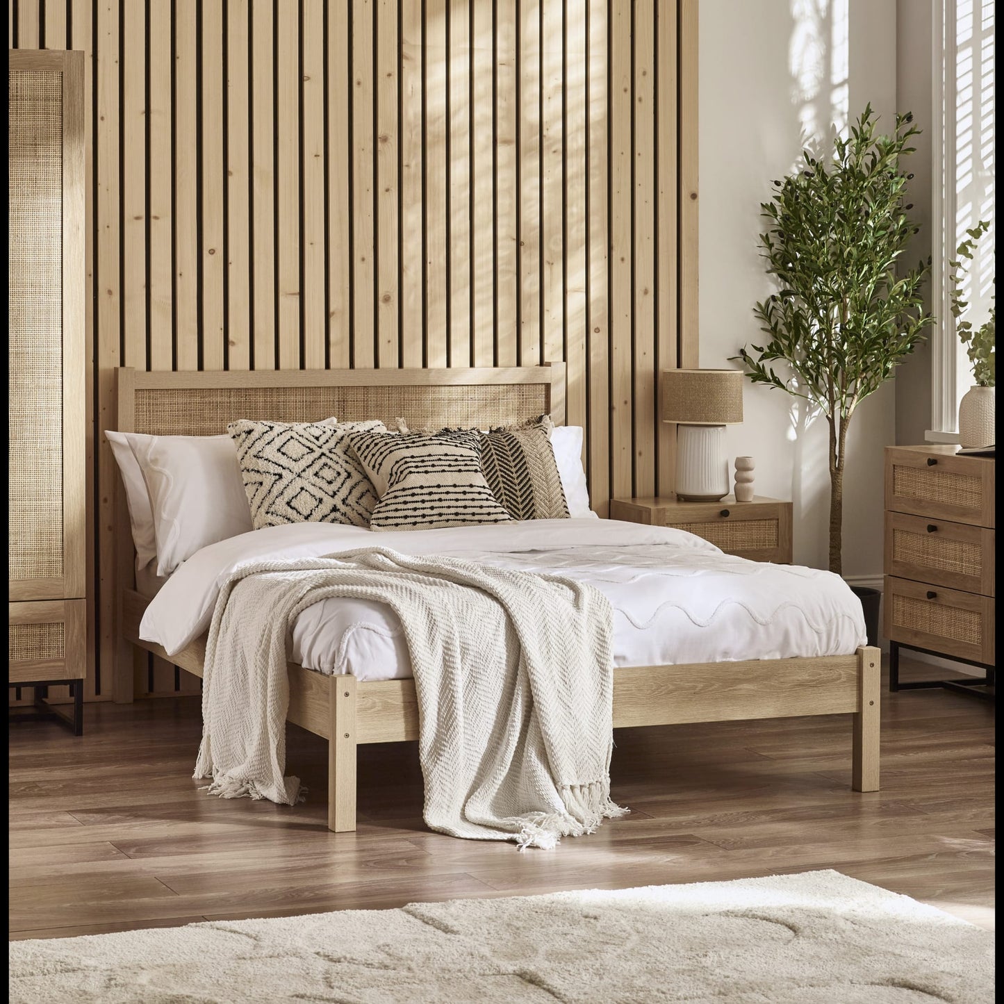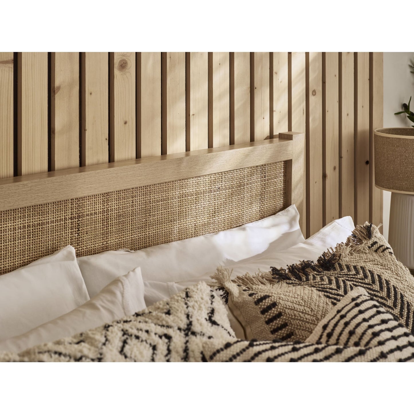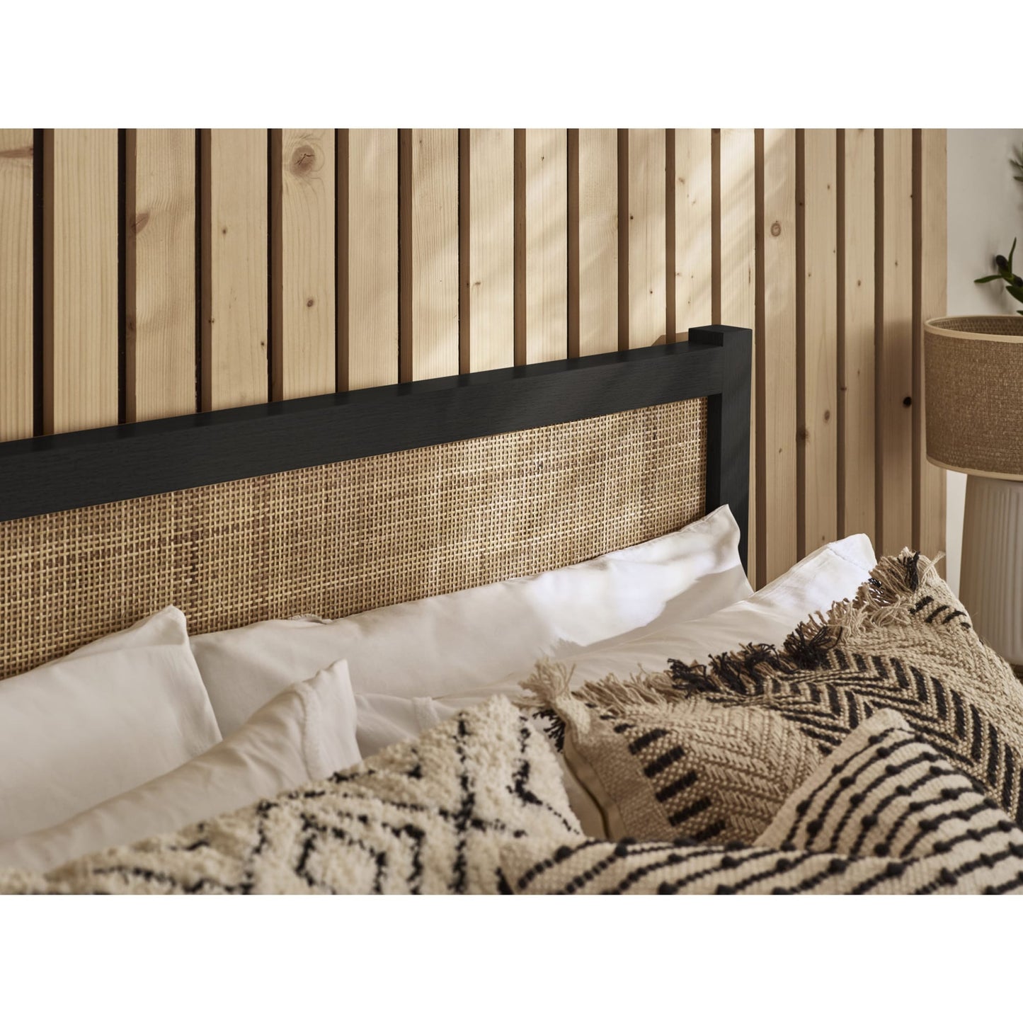 - Rattan headboard design adds a touch of retro charm to your bedroom.