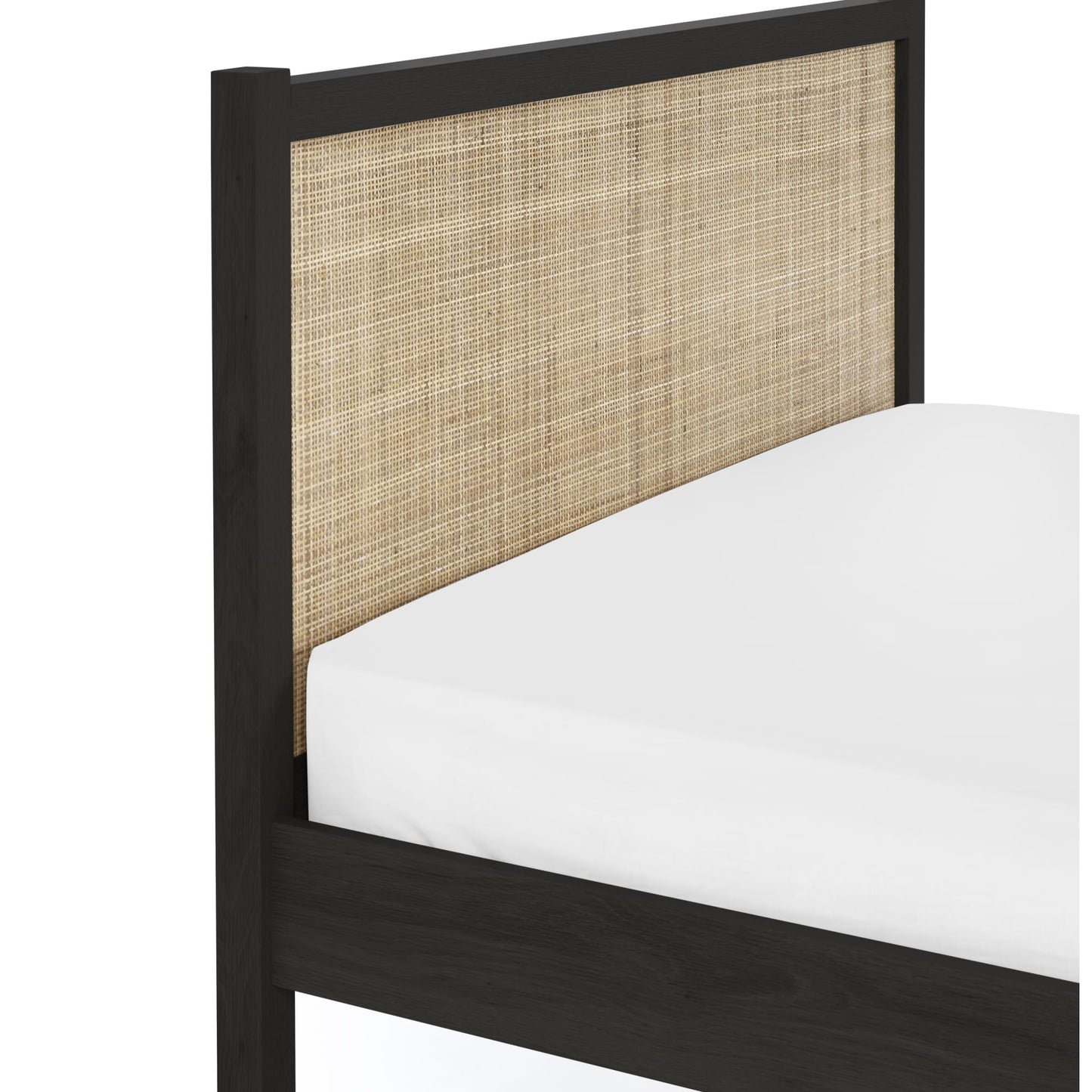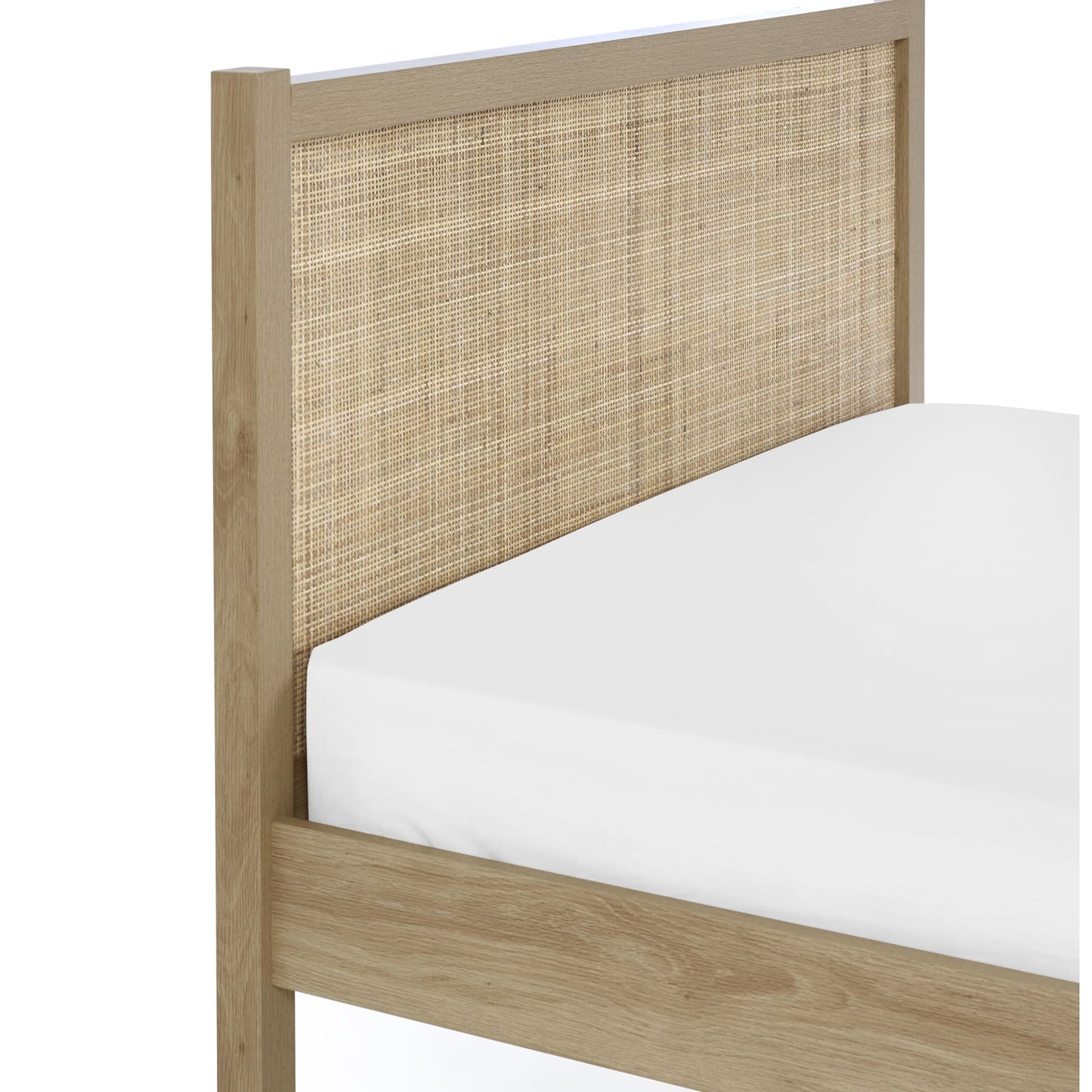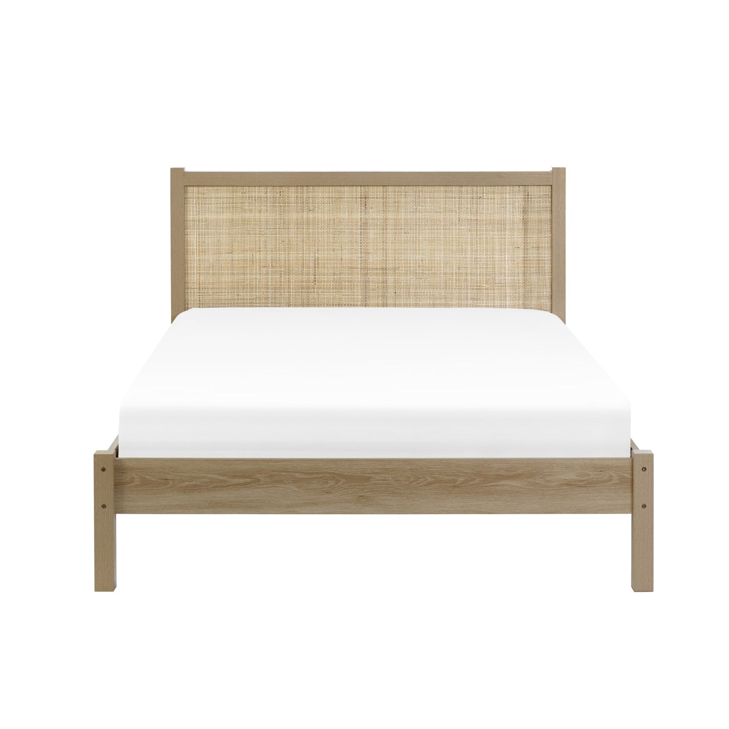 - Elegant design with intricate woven rattan detailing on the headboard.