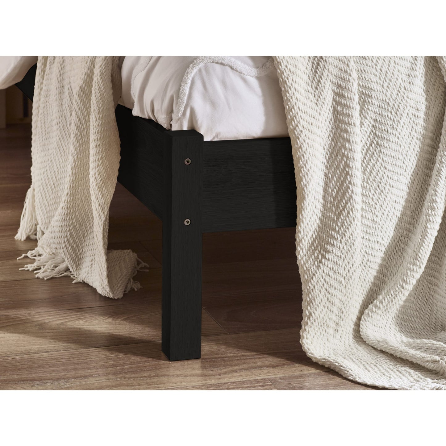 - Striking black finish adds a bold and sophisticated look to any bedroom.
