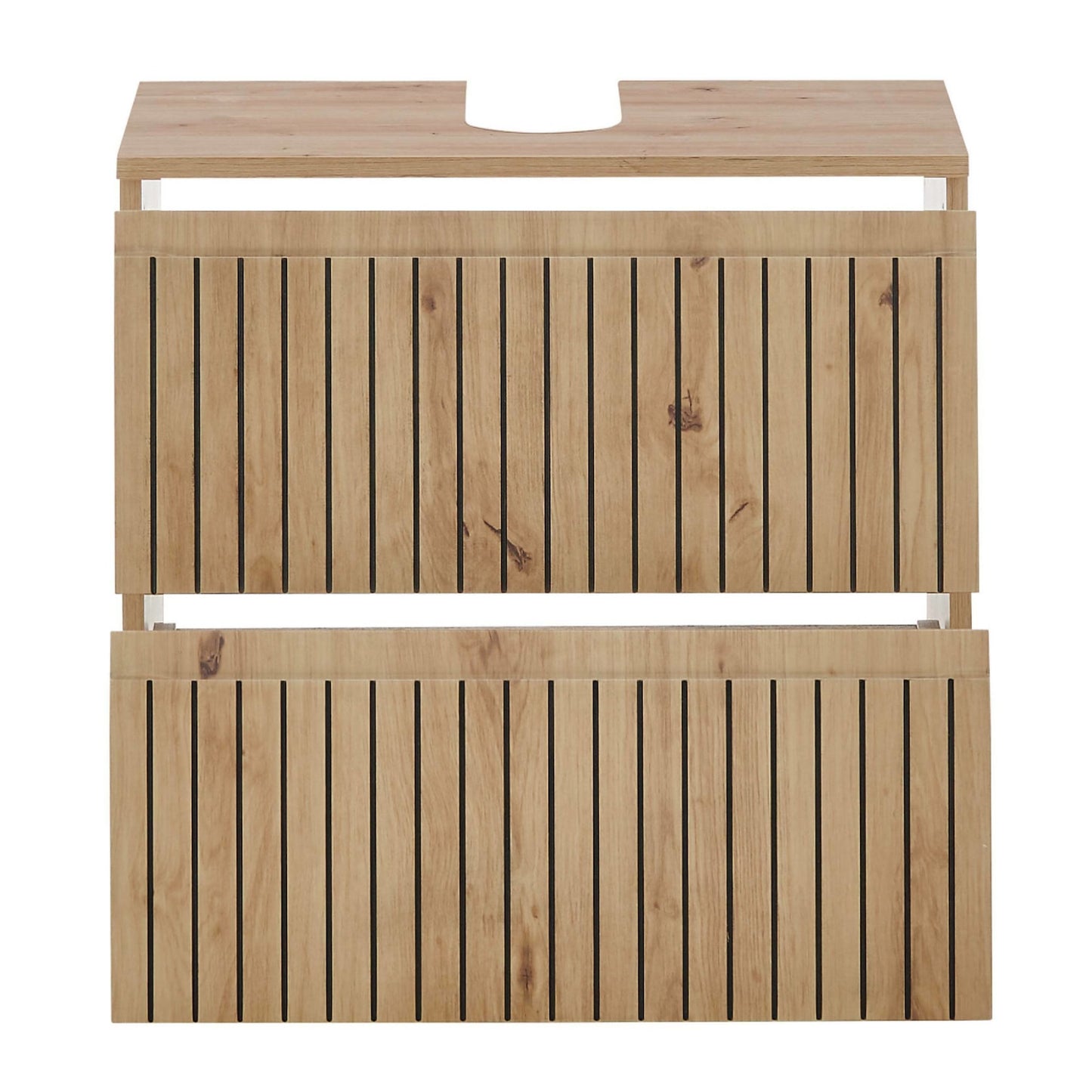 Uncover the ideal combination of practicality and understated elegance with the Austin 2 Drawer Under Sink Cabinet. This compact unit features two convenient drawers designed to maximise your bathroom space while providing stylish storage solutions. Inside, the spacious interior offers ample room for storing essentials, cleaning supplies, or extra towels. The charming slatted wood design enhances the overall aesthetic with a cohesive, natural look, while the discreet handles add a sophisticated touch.