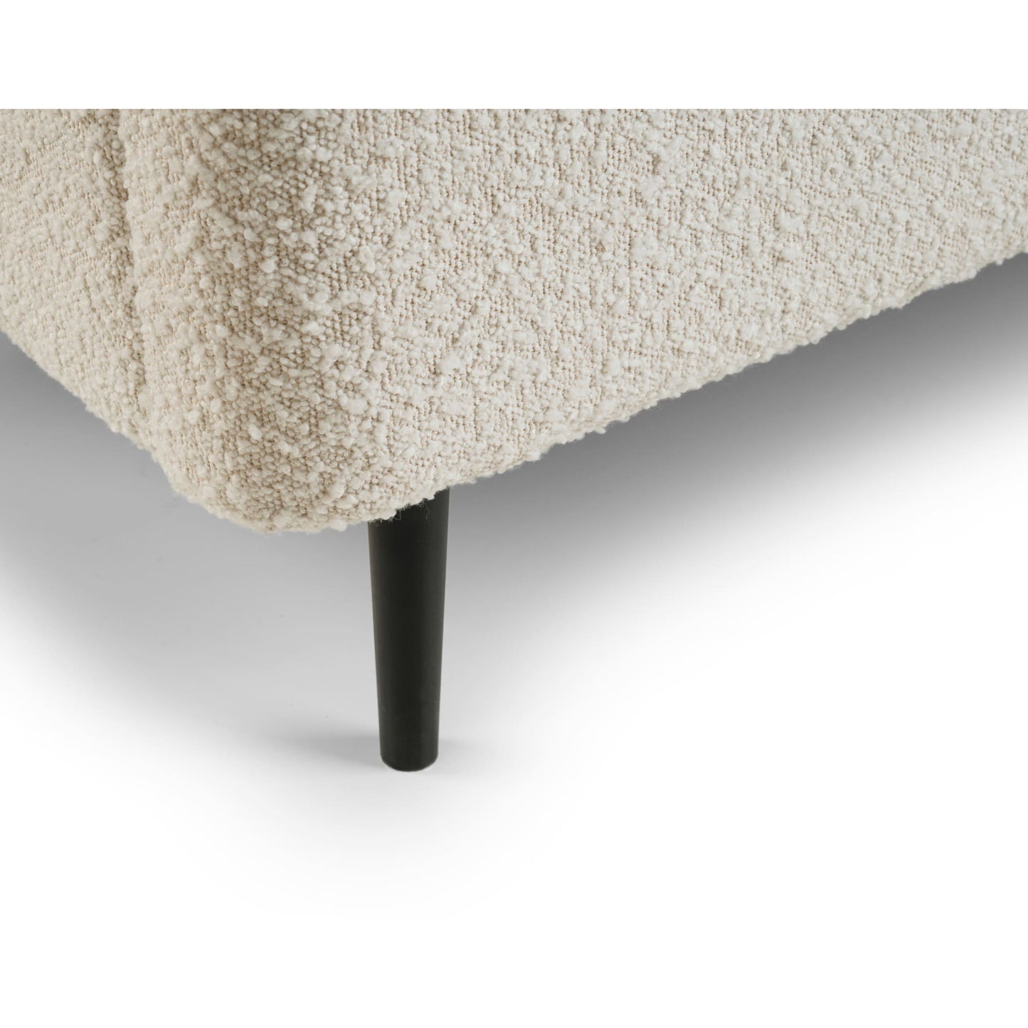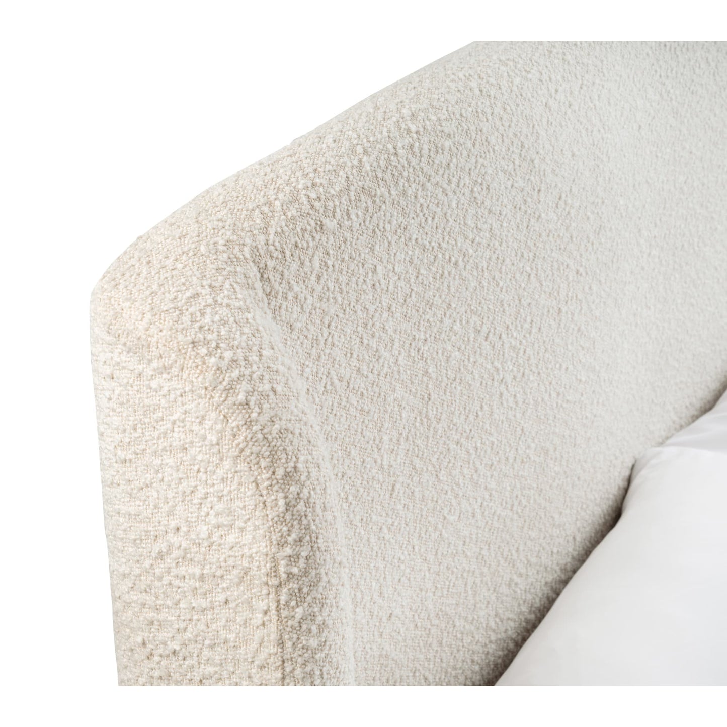 The Eden Boucle Bed excels in class and elegance bringing a sense of style and comfort to any modern bedroom space. Featuring a curved headboard and finished in a stunning ivory boucle with black legs.