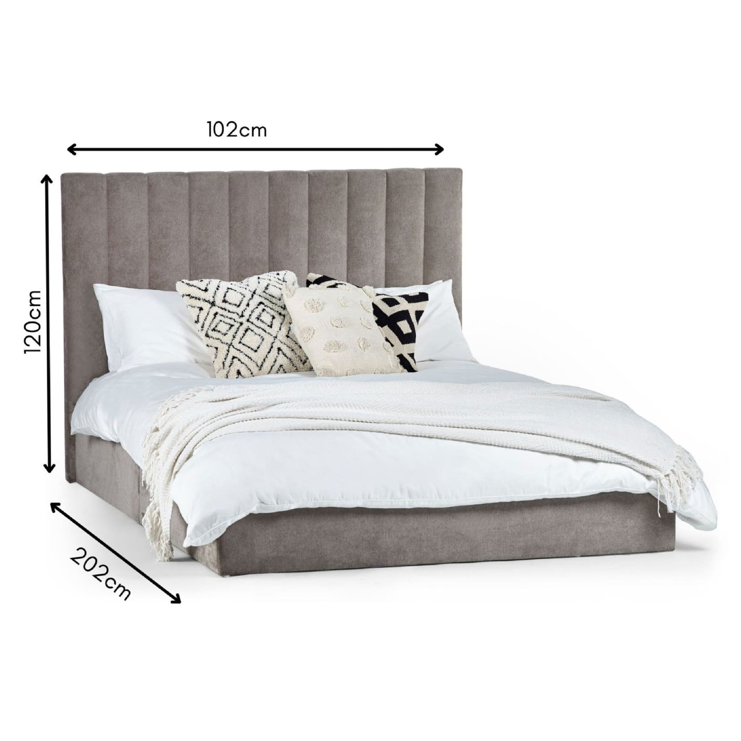 Transform your bedroom into a haven of luxury and style with this elegant bed, finished in a sophisticated chenille grey. The headboard features a modern vertical panel effect, making it a true centerpiece that draws the eye and sparks conversation. Plush padding enhances its visual appeal and invites you to lean back and indulge in cosy mornings or late-night reads. Designed for those who seek elegance without compromising on practicality, this bed arrives conveniently packaged for easy setup and complements various interior styles, turning your sleep sanctuary into a delightful escape! Simple assembly ensures you’re ready to relax in no time.
