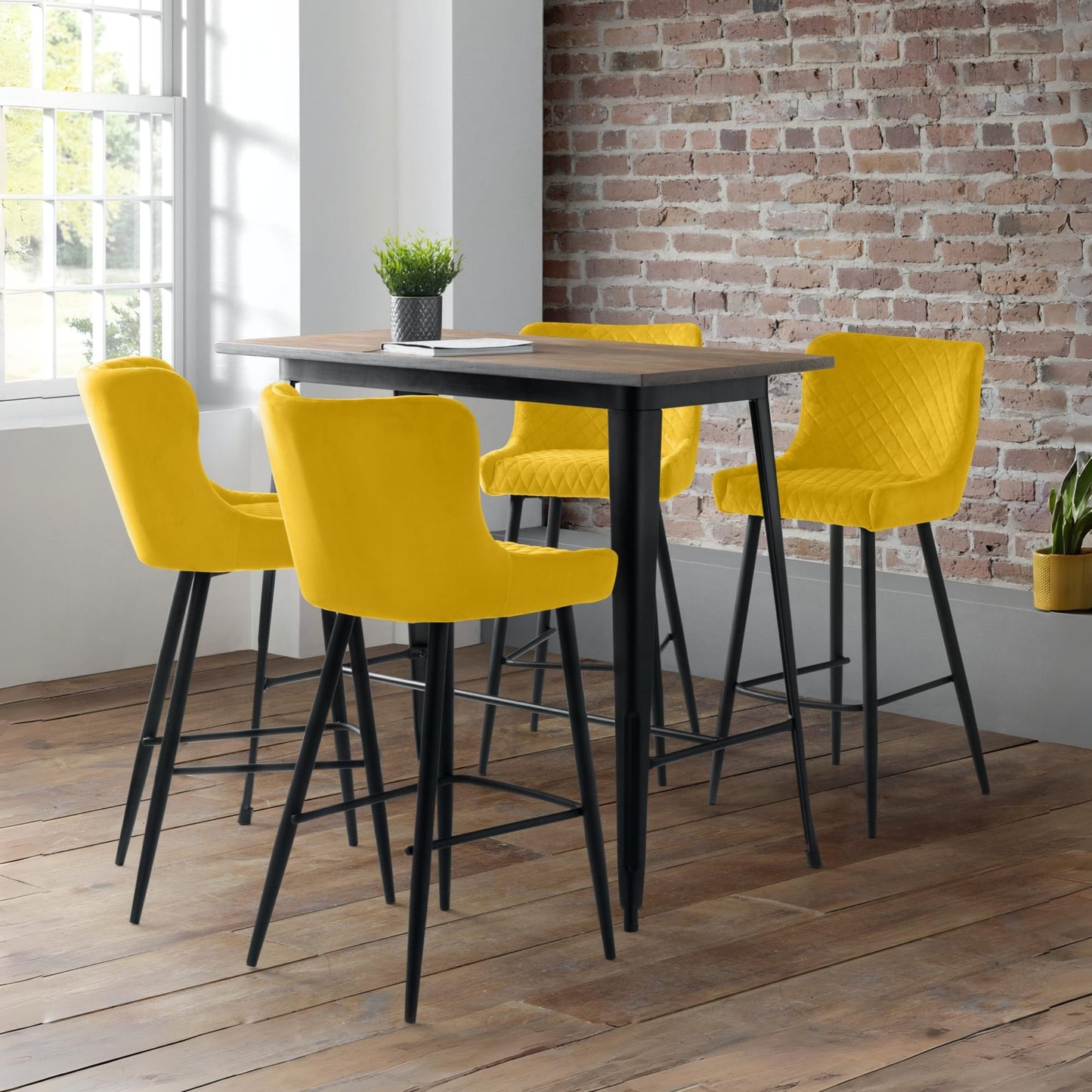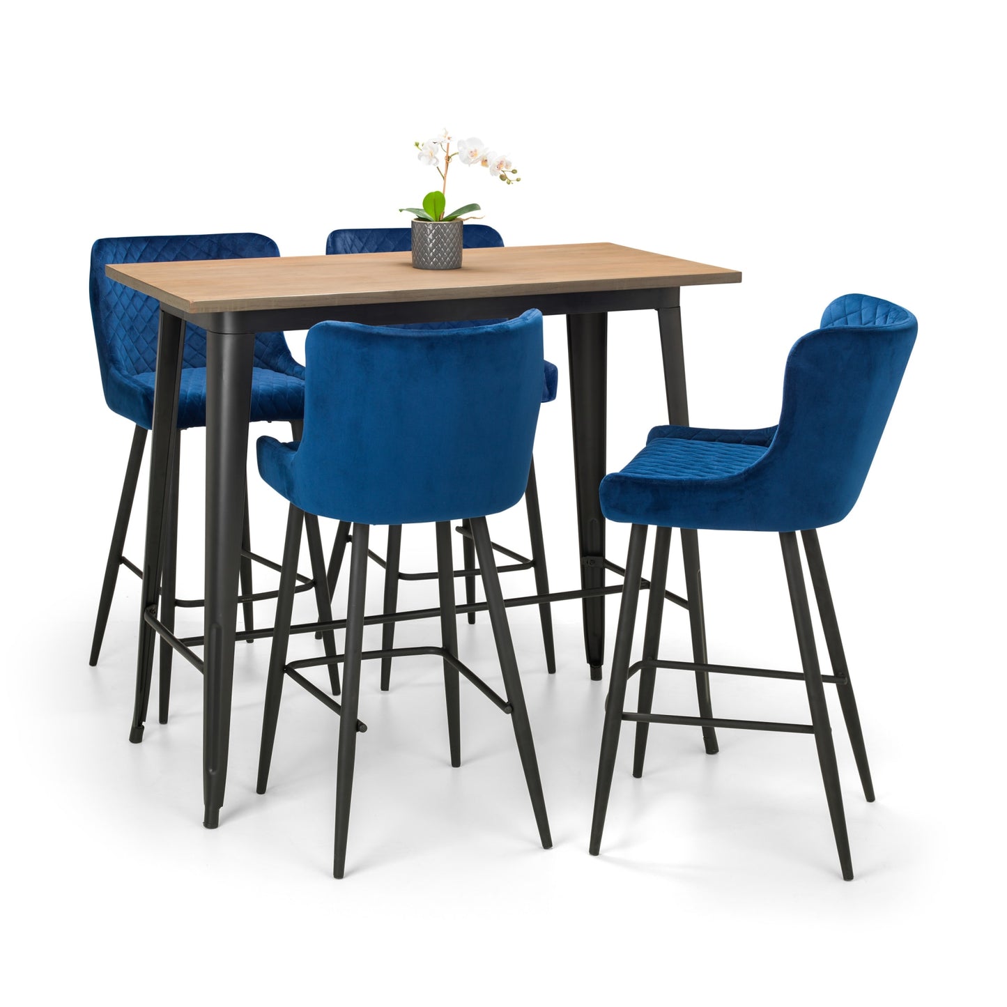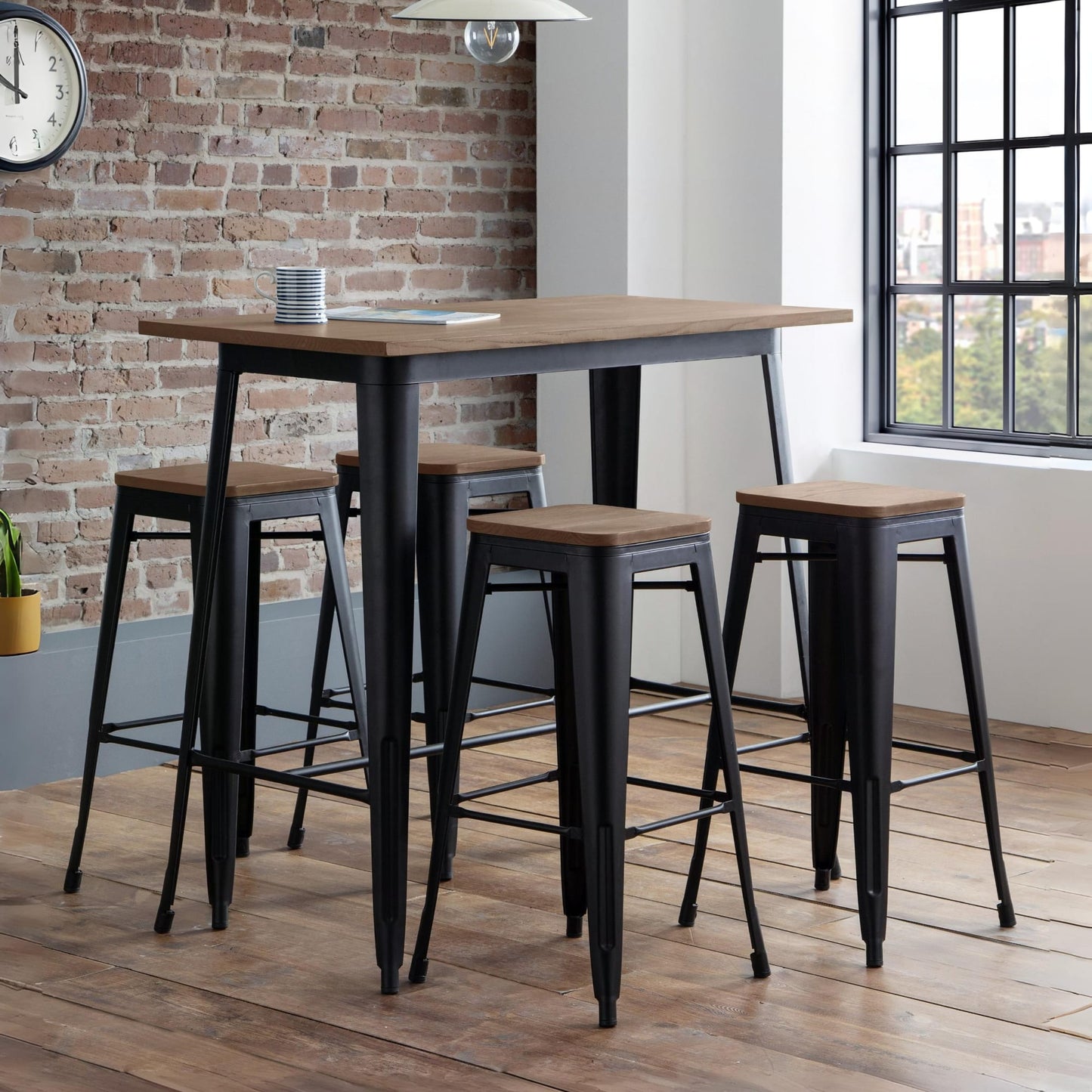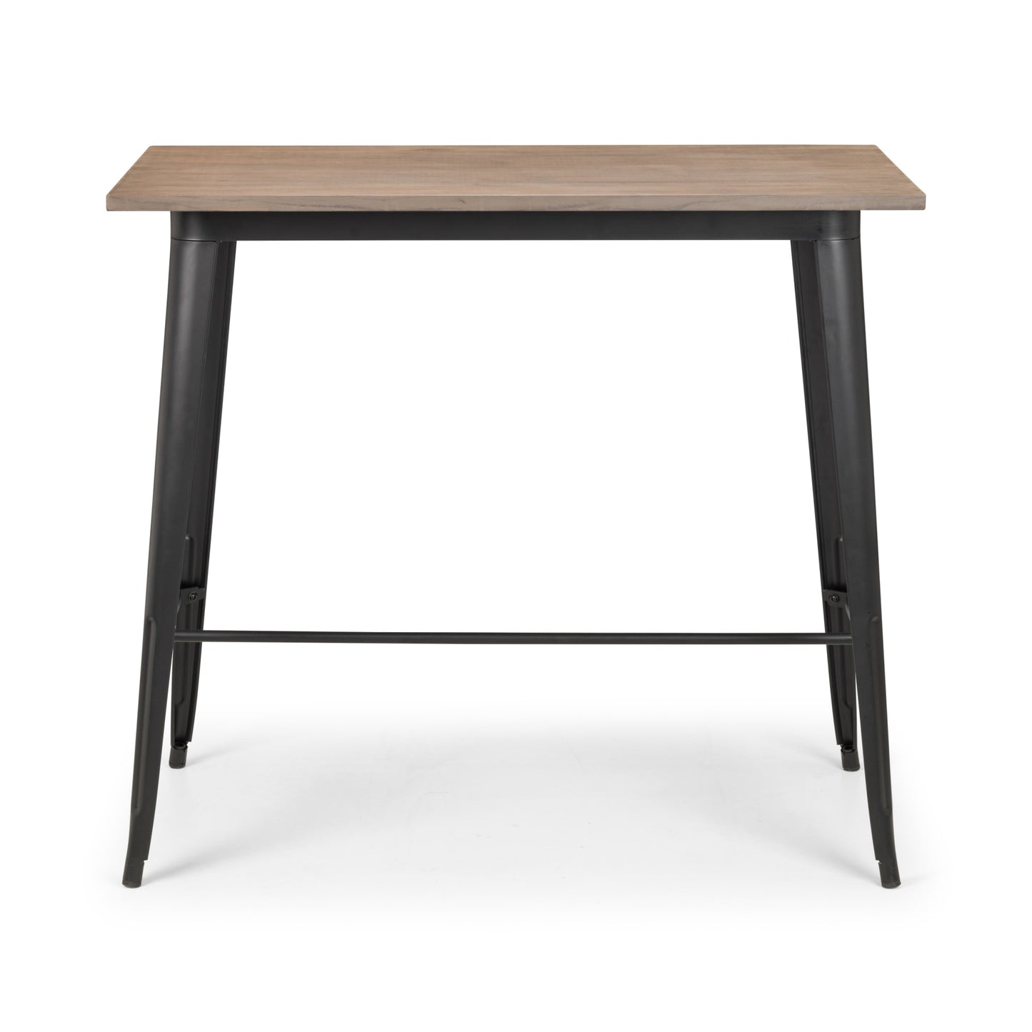 - Industrial and Trendy: The Julian Bowen Grafton Bar Table in mocha elm/black combines a rustic wood finish with sleek metal legs, creating a stylish focal point for any bar or kitchen. Its industrial design adds character to any space.