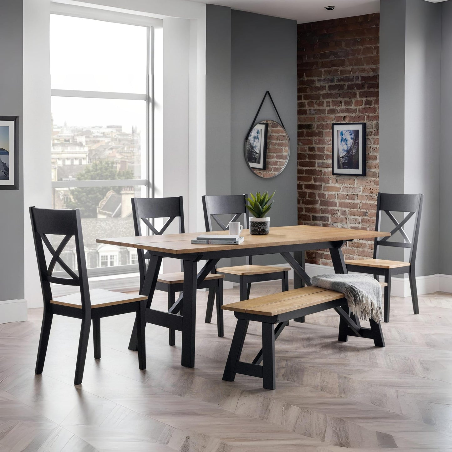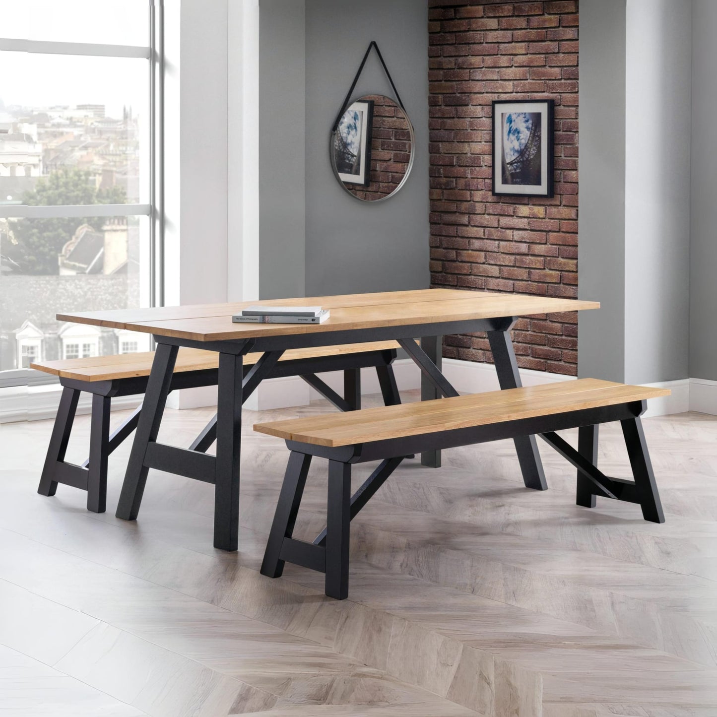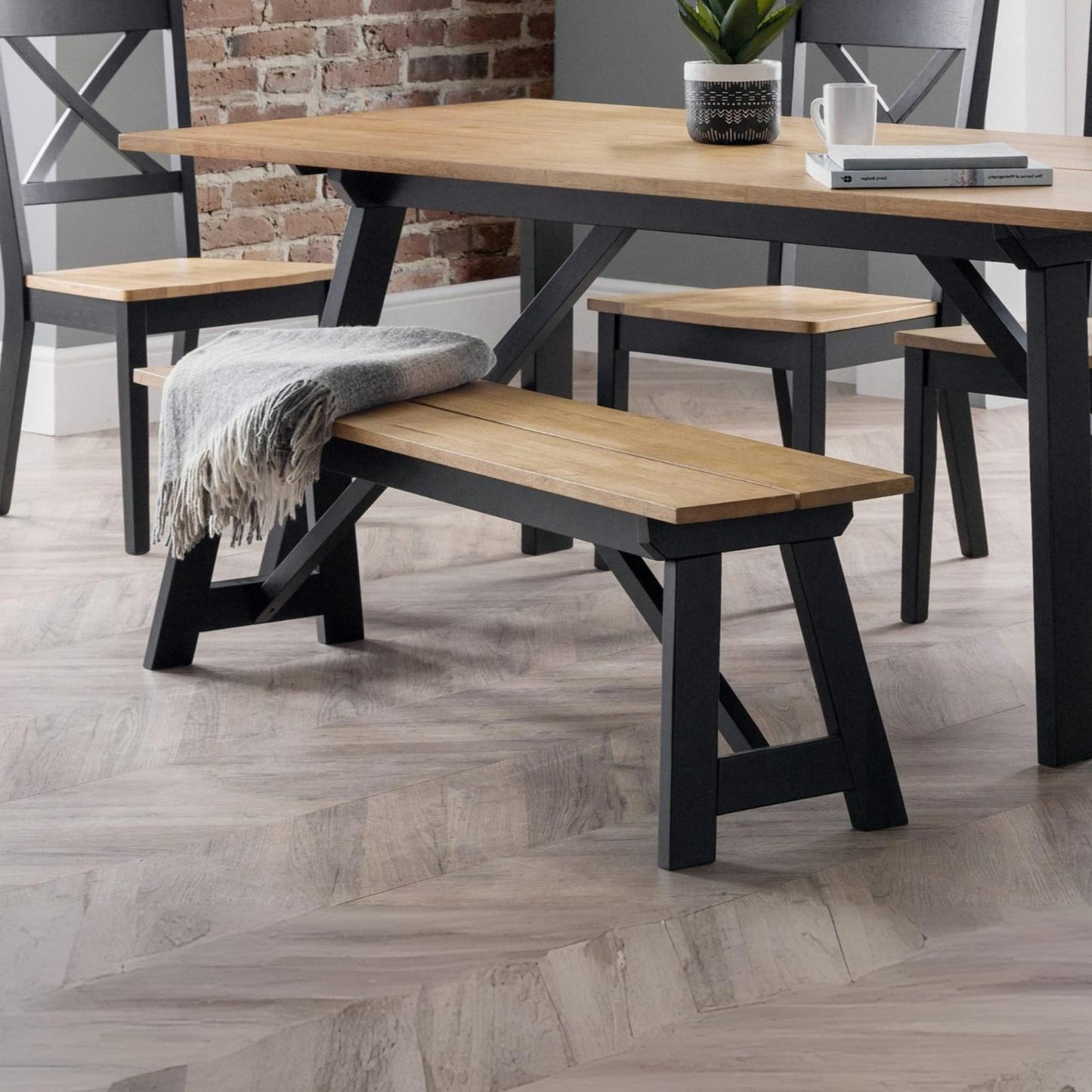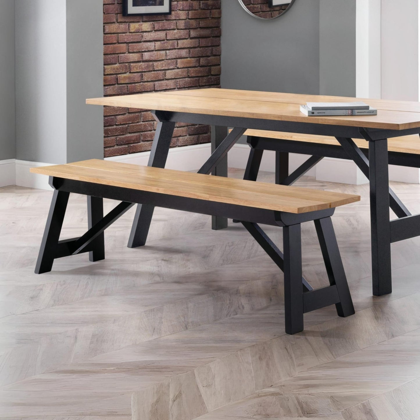 Seating up to 2 people, the Hockley Bench features a 20mm rubberwood top with a contrasting painted black trestle base. An ideal space saved that tucks neatly under the matching Hockley Dining Table when not in use.