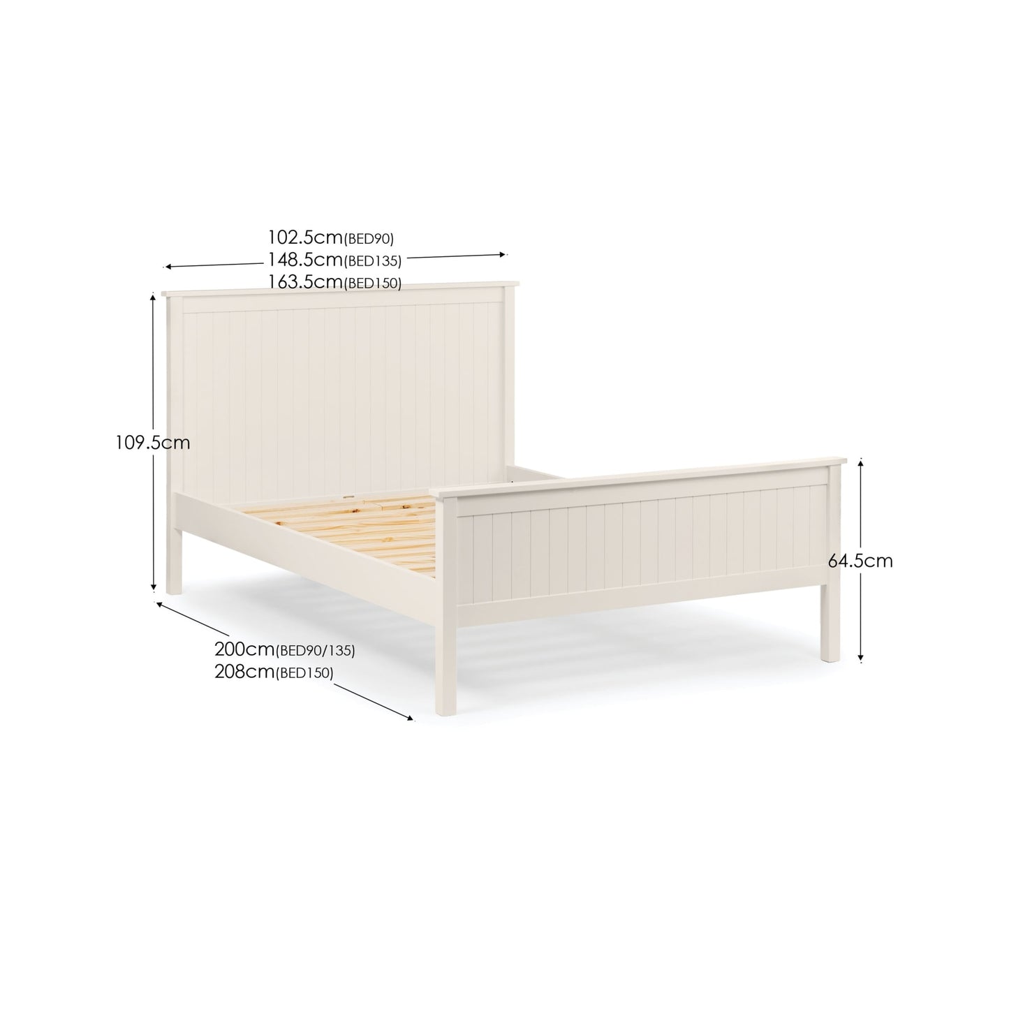 - Elegant Design: The Maine Bed features a classic dove grey finish and a timeless design, perfect for any bedroom decor. Sturdy Construction: Made from high-quality materials for durability and stability. Comfortable Support: The slatted base provides excellent support for your mattress, ensuring a comfortable night’s sleep. Versatile Style: Complements both traditional and contemporary interiors. Easy to Clean: The smooth surface is easy to maintain and keep looking new.