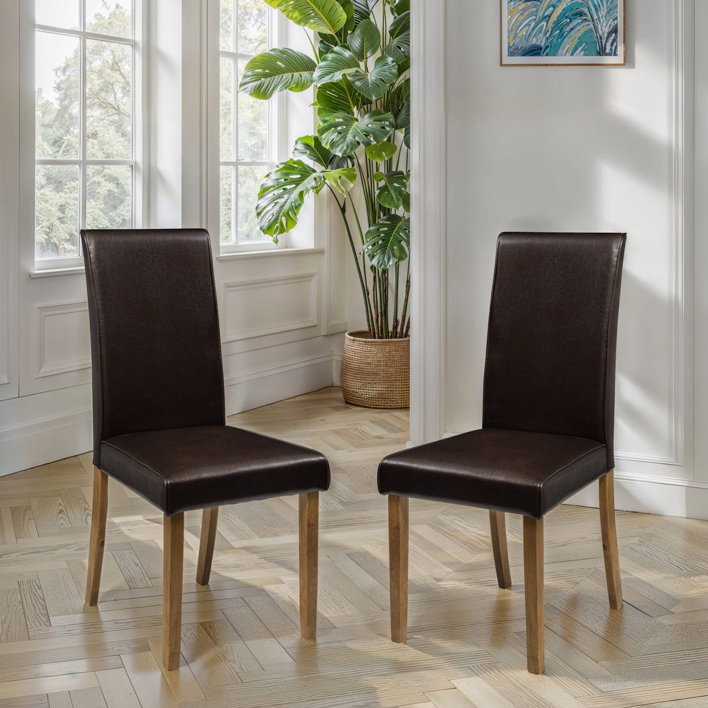 • What’s Included: Set of 2 dining chairs, fully assembled. The chairs arrive ready to use, with no assembly required, allowing you to enjoy your new furniture immediately. This convenience makes them an ideal choice for busy households or anyone looking for a hassle-free furniture solution.