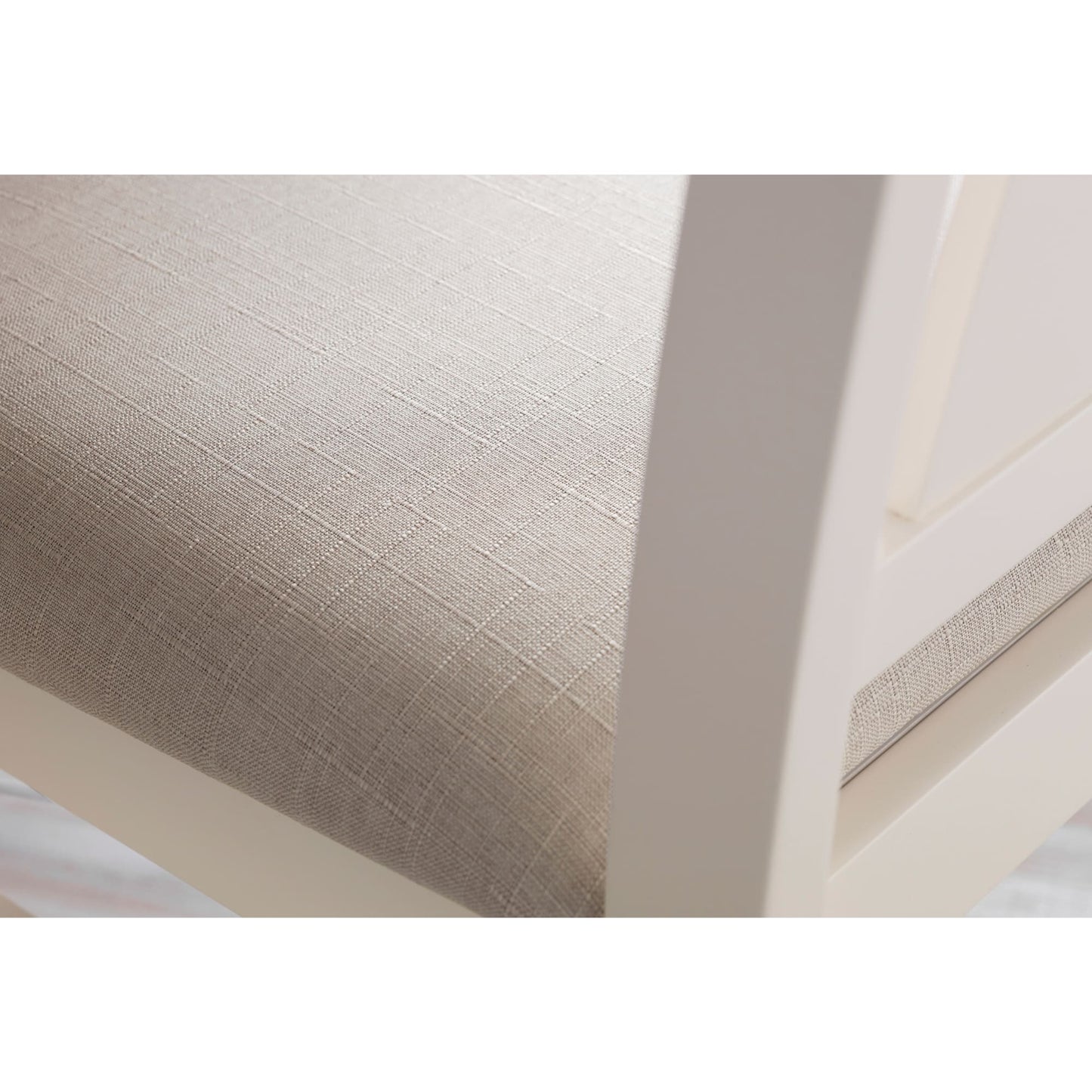 • Sturdy rubberwood frame with an elegant fabric padded seat..