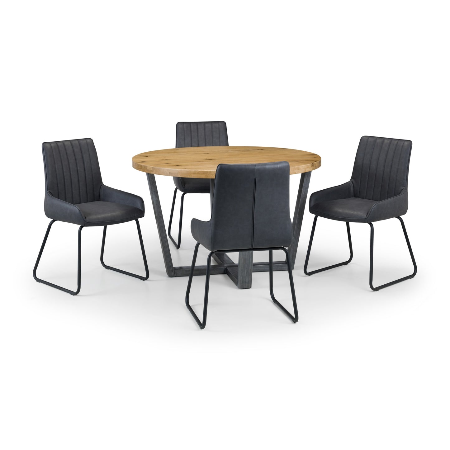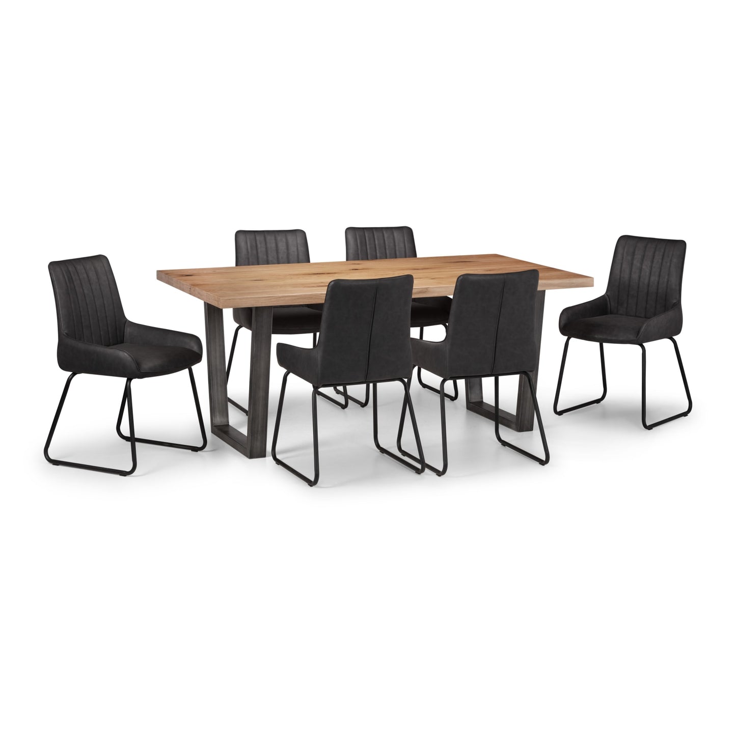 This Retro Soho Dining Chair is finished in an antique black faux leather with a striking black metal frame, sure to compliment any contemporary décor. The perfect match for the Brooklyn Dining Table to create an industrial, retro feel within any contemporary decor.
