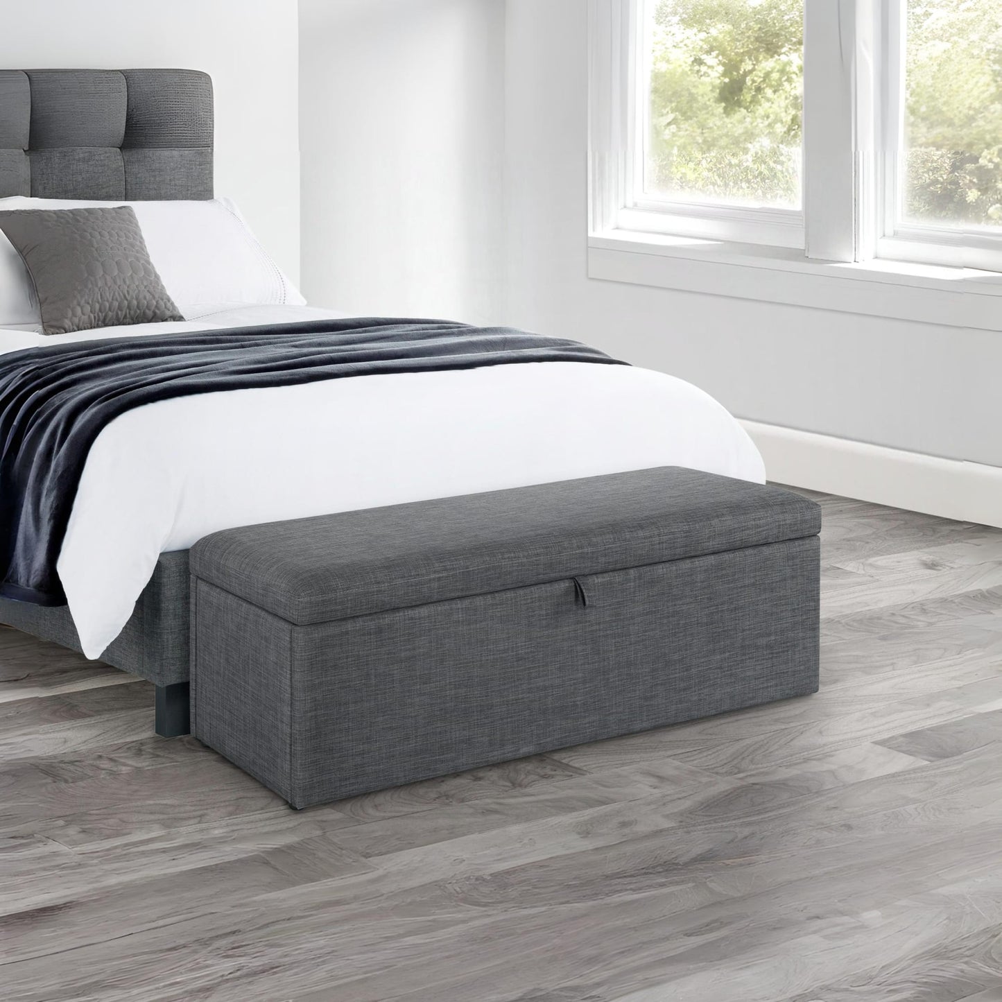 The Sorrento Blanket Box is upholstered in a sophisticated slate grey linen fabric and provides a substantial amount of storage for blankets and linen. It's stylish simplicity is subtly accented with discreet diamond button detailing on its top surface. It is a perfect accompaniment for both of Julian Bowen's Sorrento and Santorini beds, which are presented in the matching fabric.