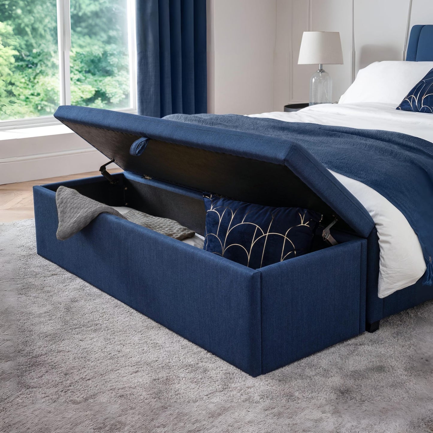- Finished in a sophisticated blue linen fabric, suitable for a range of décor..