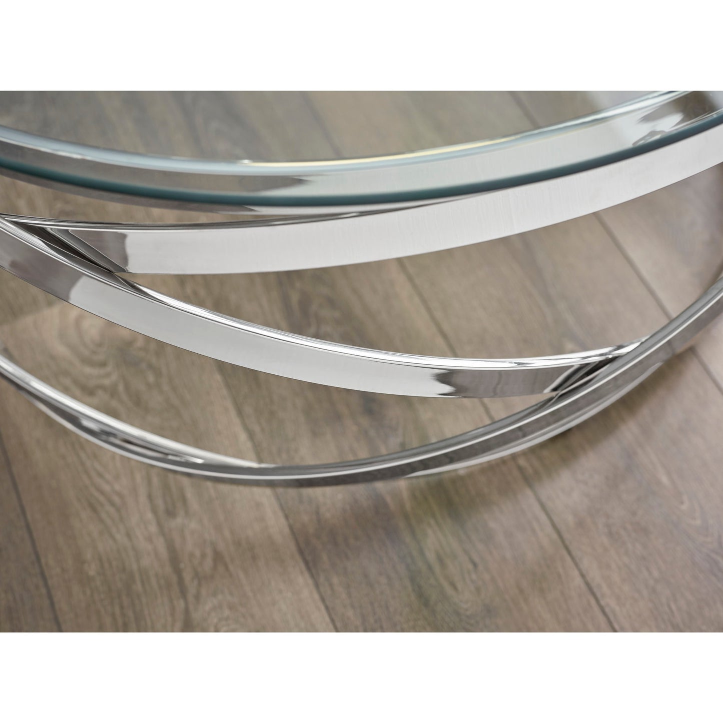 Unveil a new level of sophistication with the Vienna Coffee Table. This exquisite piece boasts a captivating circular design with elegantly curved metal swirl base that infuses your space with artistic flair. The clear glass top enhances its modern, airy feel, making it a standout conversation piece and a stylish focal point. Bringing a dash of elegance to your home.